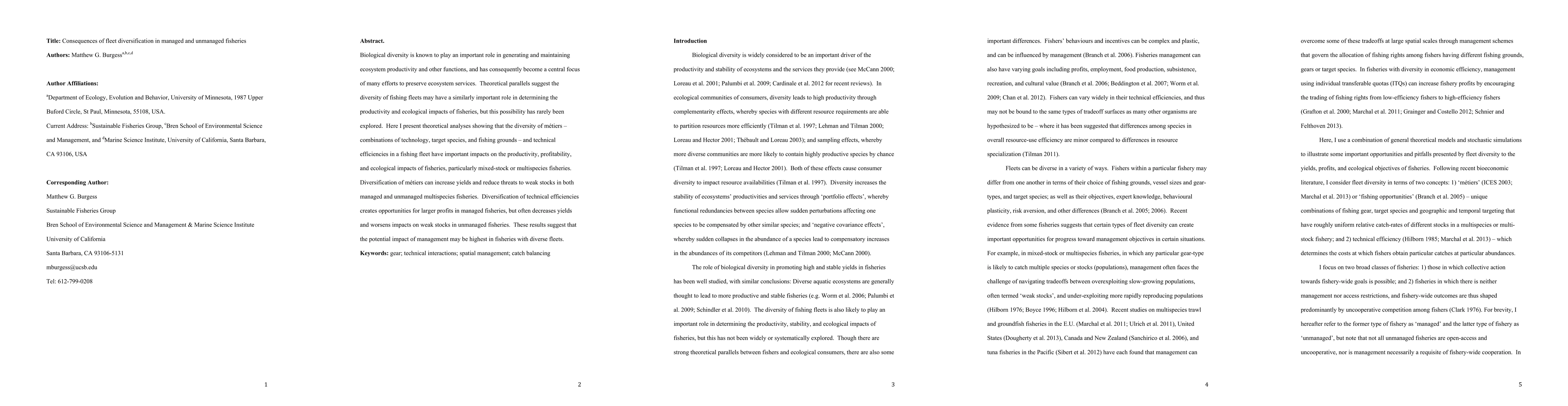 This paper explores the effects of fleet diversification in fisheries, finding that diverse fleets composed of varied m\'etiers can enhance productivity and reduce threats to weak stocks in both managed and unmanaged multispecies fisheries. However, technical efficiencies in managed fisheries can lead to higher profits, while in unmanaged fisheries, they often decrease yields and worsen impacts on vulnerable stocks.