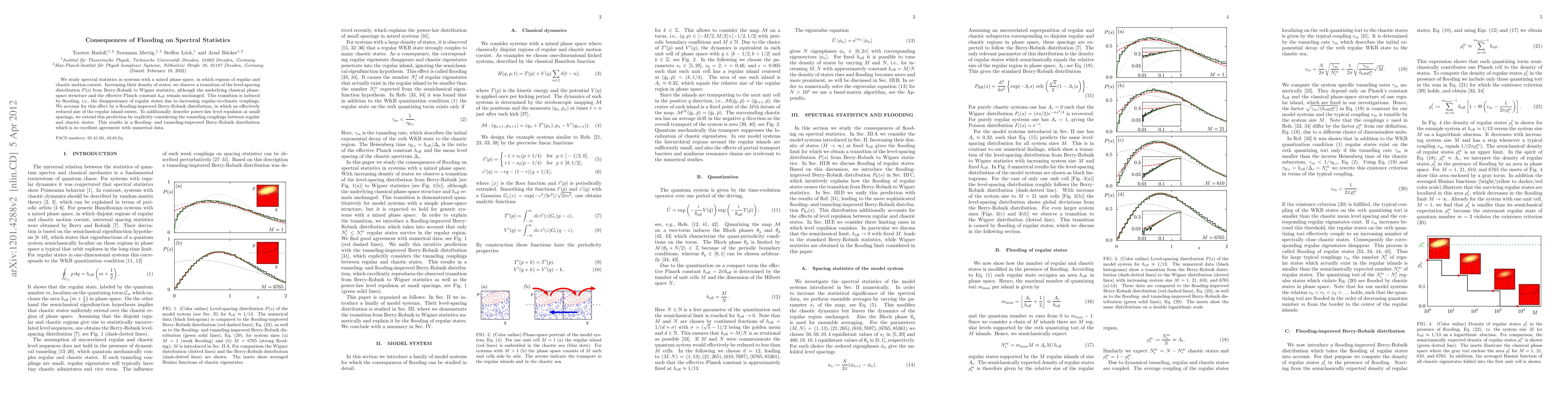 We study spectral statistics in systems with a mixed phase space, in which regions of regular and chaotic motion coexist. Increasing their density of states, we observe a transition of the level-spacing distribution P(s) from Berry-Robnik to Wigner statistics, although the underlying classical phase-space structure and the effective Planck constant remain unchanged. This transition is induced by flooding, i.e., the disappearance of regular states due to increasing regular-to-chaotic couplings. We account for this effect by a flooding-improved Berry-Robnik distribution, in which an effectively reduced size of the regular island enters. To additionally describe power-law level repulsion at small spacings, we extend this prediction by explicitly considering the tunneling couplings between regular and chaotic states. This results in a flooding- and tunneling-improved Berry-Robnik distribution which is in excellent agreement with numerical data.