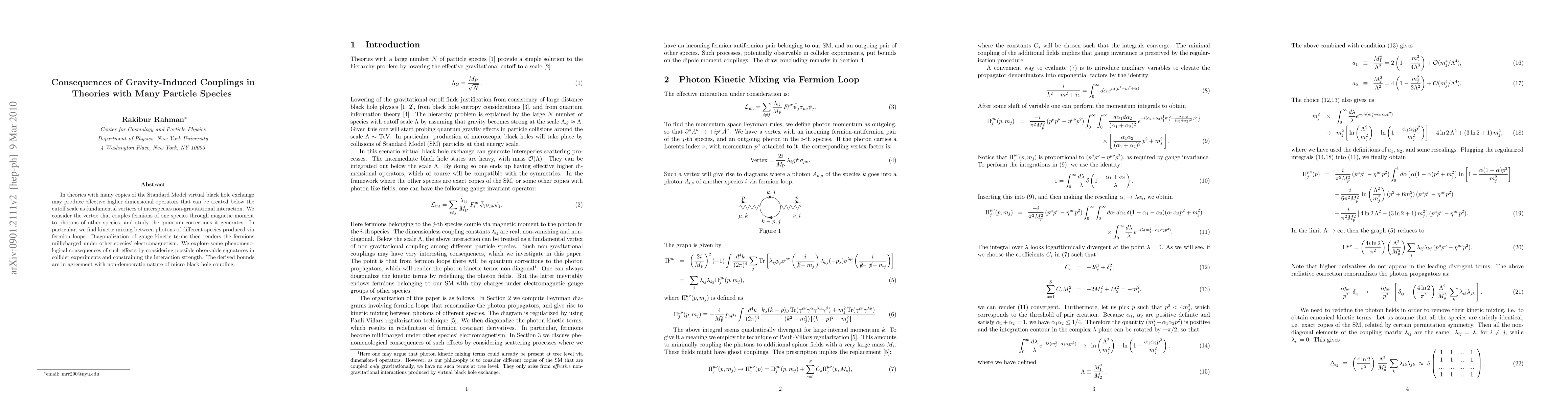 This paper investigates the consequences of gravity-induced couplings in theories with multiple Standard Model copies, focusing on a vertex that connects fermions of different species via magnetic moment interactions with photons. It finds kinetic mixing and millicharge effects, and explores their implications for collider experiments and interaction strength constraints.