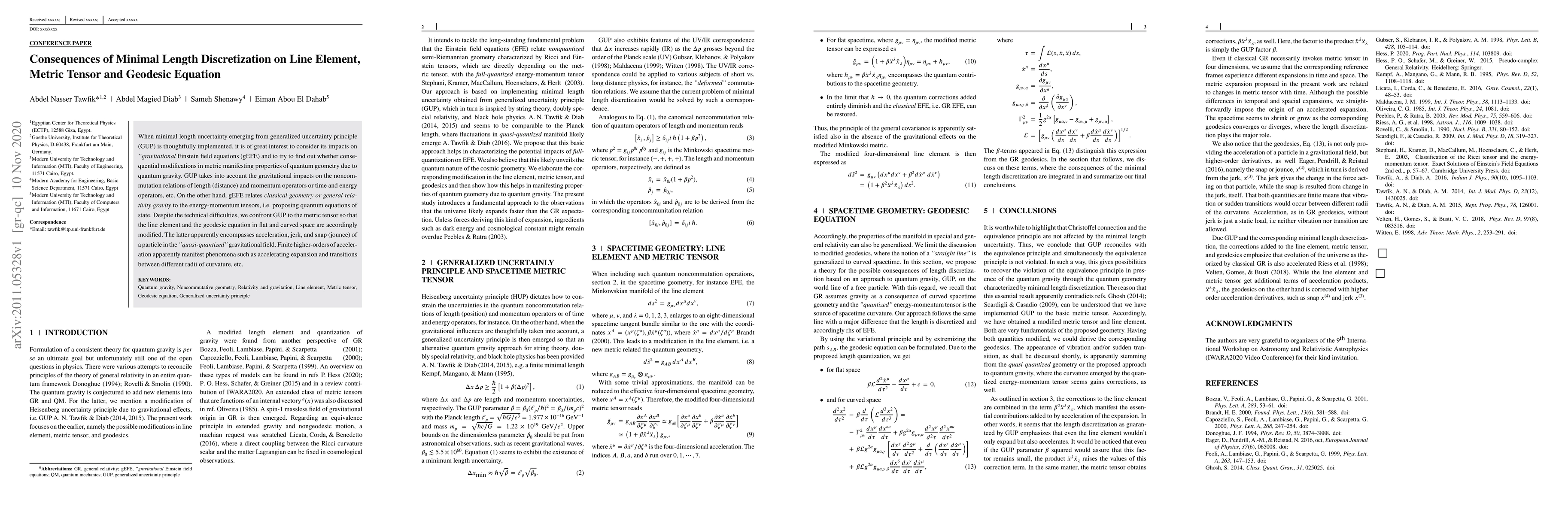 This paper explores the effects of minimal length discretization from the generalized uncertainty principle on the line element, metric tensor, and geodesic equation, revealing modifications in classical geometry due to quantum gravity influences. The study finds that these modifications lead to finite higher-order accelerations, potentially explaining phenomena like accelerating expansion and curvature transitions.