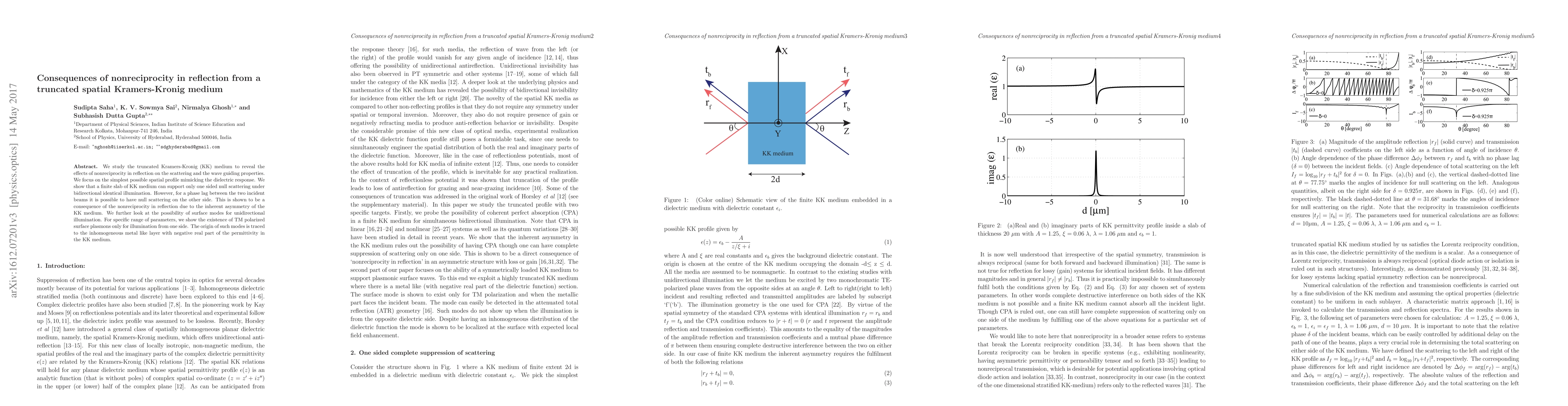 We study the truncated Kramers-Kronig (KK) medium to reveal the effects of nonreciprocity in reflection on the scattering and the wave guiding properties. We focus on the simplest possible spatial profile mimicking the dielectric response. We show that a finite slab of KK medium can support only one sided null scattering under bidirectional identical illumination. However, for a phase lag between the two incident beams it is possible to have null scattering on the other side. This is shown to be a consequence of the nonreciprocity in reflection due to the inherent asymmetry of the KK medium. We further look at the possibility of surface modes for unidirectional illumination. For specific range of parameters, we show the existence of TM polarized surface plasmons only for illumination from one side. The origin of such modes is traced to the inhomogeneous metal like layer with negative real part of the permittivity in the KK medium.