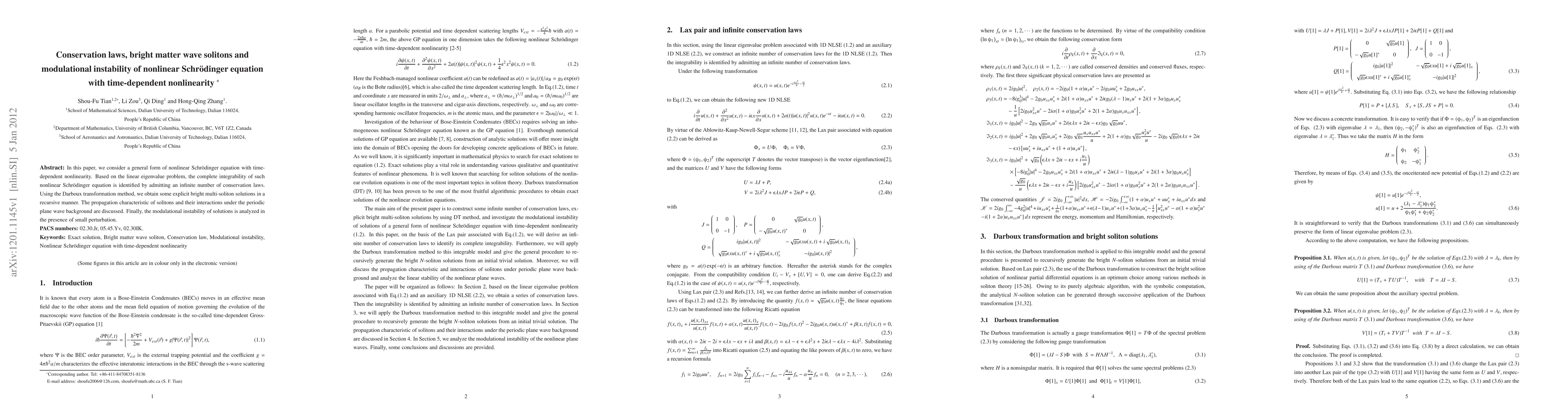 This paper explores a nonlinear Schrödinger equation with time-dependent nonlinearity, identifying its complete integrability through an infinite number of conservation laws. It derives explicit bright multi-soliton solutions using the Darboux transformation method and examines their interactions and modulational instability under periodic plane wave backgrounds.