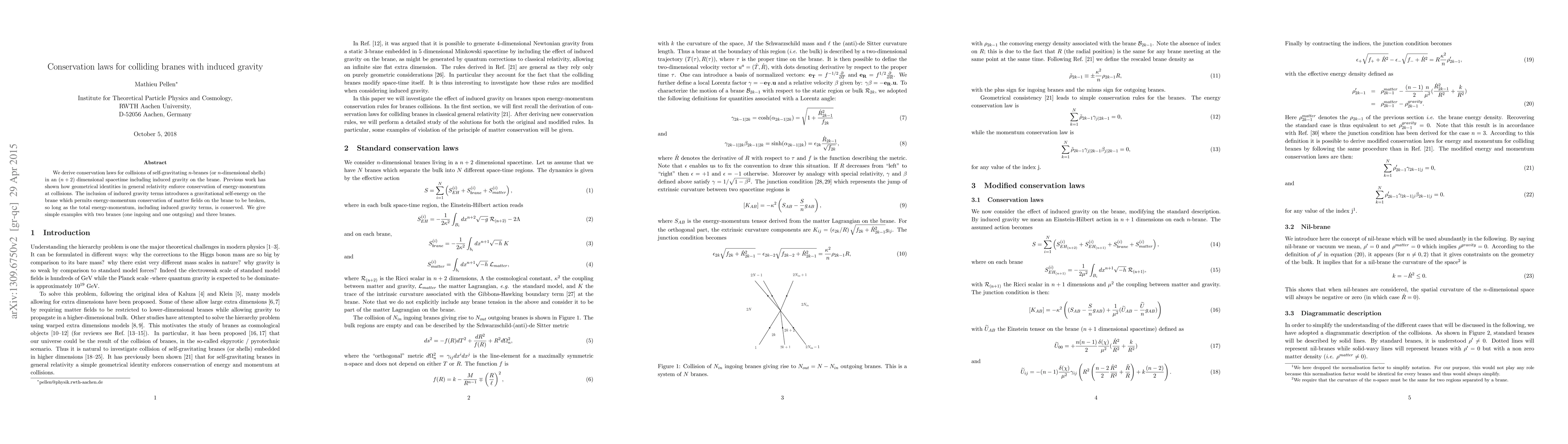 This paper derives conservation laws for self-gravitating $n$-branes colliding in an $(n+2)$ dimensional spacetime with induced gravity, showing how induced gravity can break matter energy-momentum conservation while maintaining total energy-momentum conservation. Examples are provided for two and three brane collisions.