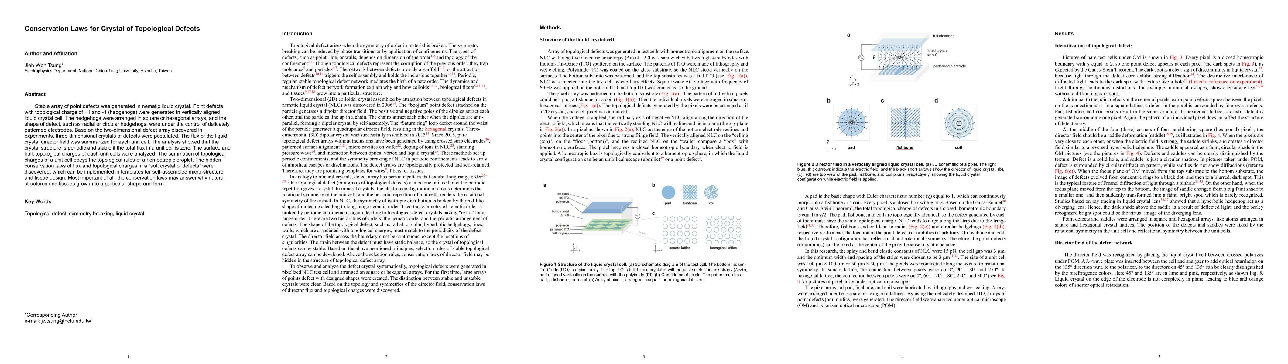 The paper presents a detailed analysis of director flux and topological charges in topological defect crystals, uncovering hidden conservation laws that govern their stability and structure.