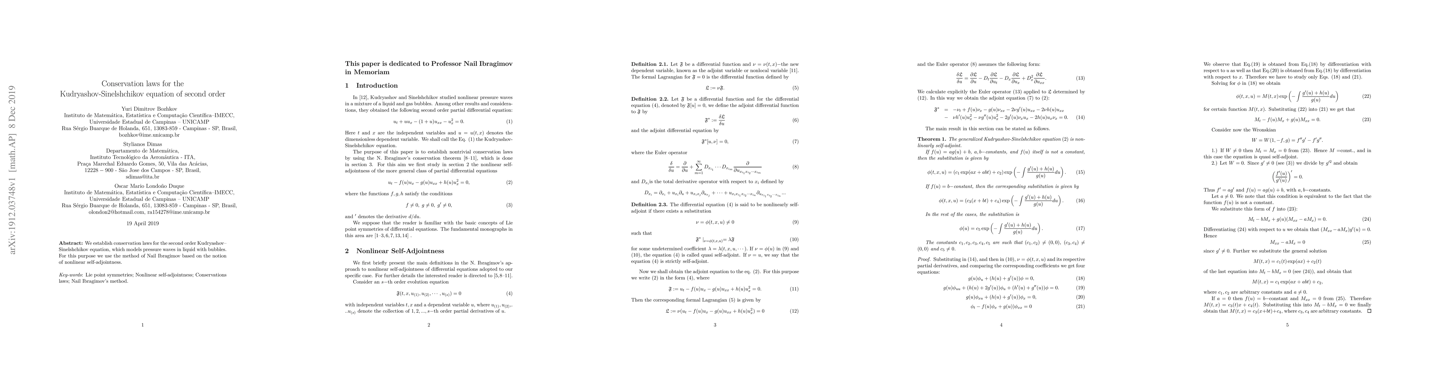 We establish conservation laws for the second order Kudryashov-Sinelshchikov equation, which models pressure waves in liquid with bubbles. For this purpose we use the method of Nail Ibragimov based on the notion of nonlinear self-adjointness.