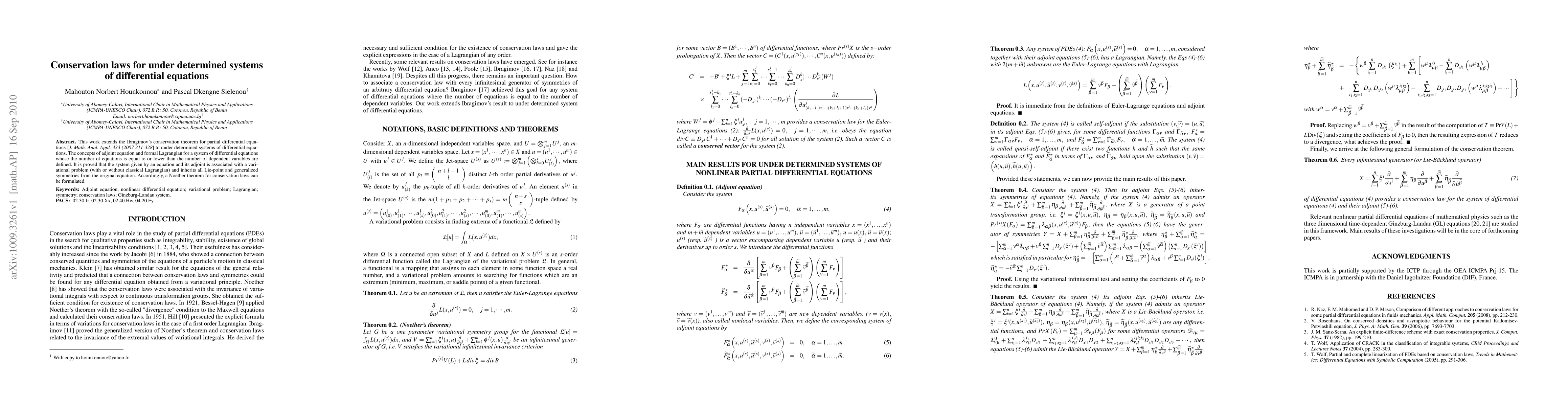 This paper extends Ibragimov's conservation theorem to underdetermined systems of differential equations, showing that a system with fewer equations than variables has associated symmetries and can be used to formulate a Noether theorem for conservation laws.