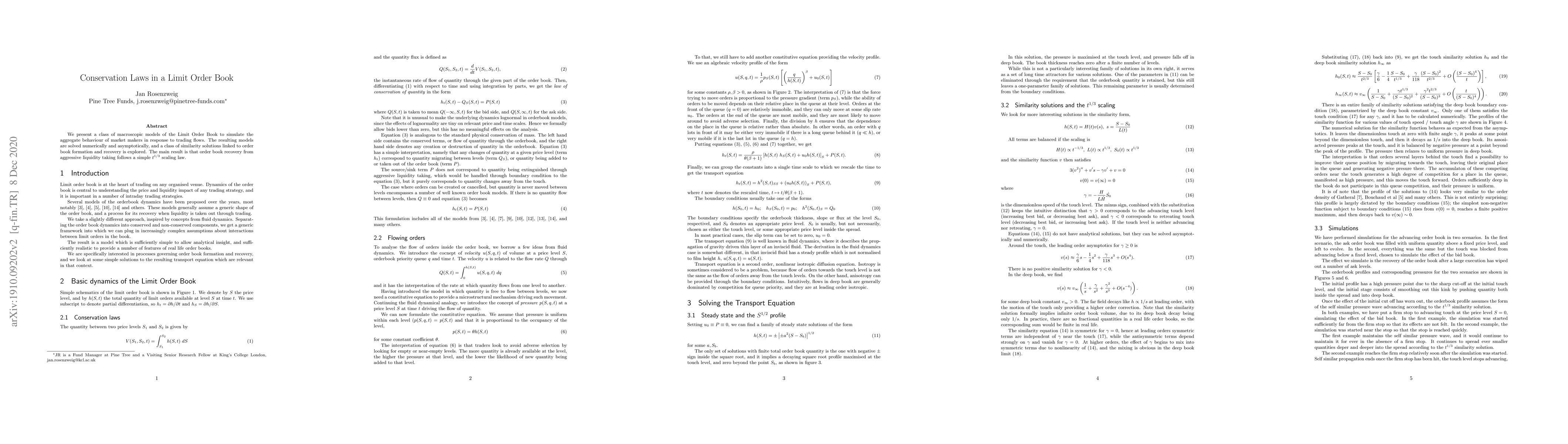 We present a class of macroscopic models of the Limit Order Book to simulate the aggregate behaviour of market makers in response to trading flows. The resulting models are solved numerically and asymptotically, and a class of similarity solutions linked to order book formation and recovery is explored. The main result is that order book recovery from aggressive liquidity taking follows a simple $t^{1/3}$ scaling law.