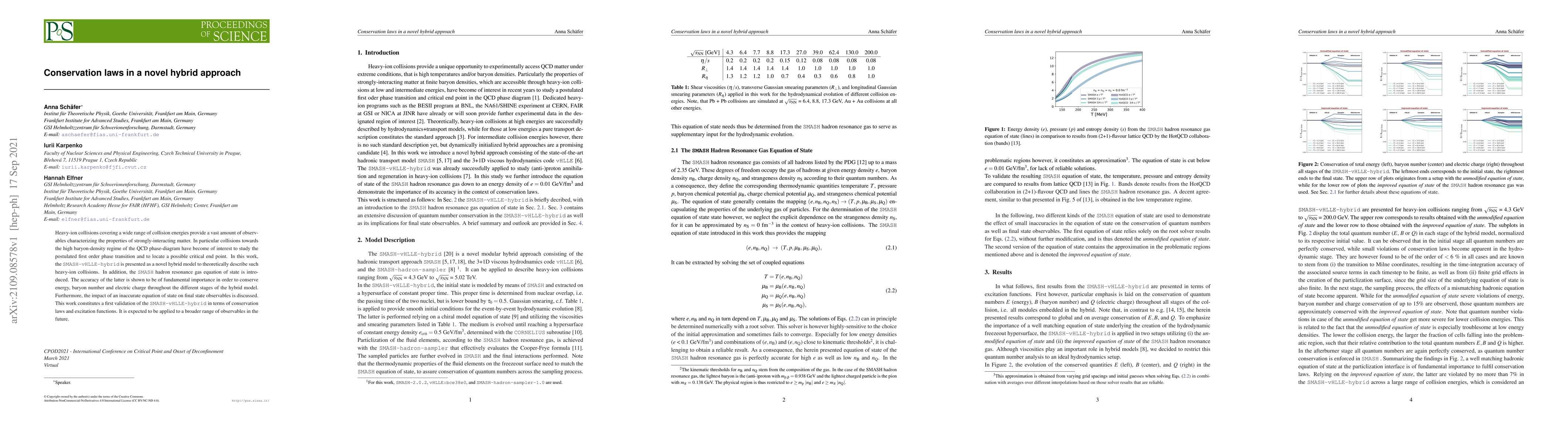 Heavy-ion collisions covering a wide range of collision energies provide a vast amount of observables characterizing the properties of strongly-interacting matter. In particular collisions towards the high baryon-density regime of the QCD phase-diagram have become of interest to study the postulated first order phase transition and to locate a possible critical end point. In this work, the SMASH-vHLLE-hybrid is presented as a novel hybrid model to theoretically describe such heavy-ion collisions. In addition, the SMASH hadron resonance gas equation of state is introduced. The accuracy of the latter is shown to be of fundamental importance in order to conserve energy, baryon number and electric charge throughout the different stages of the hybrid model. Furthermore, the impact of an inaccurate equation of state on final state observables is discussed. This work constitutes a first validation of the SMASH-vHLLE-hybrid in terms of conservation laws and excitation functions. It is expected to be applied to a broader range of observables in the future.