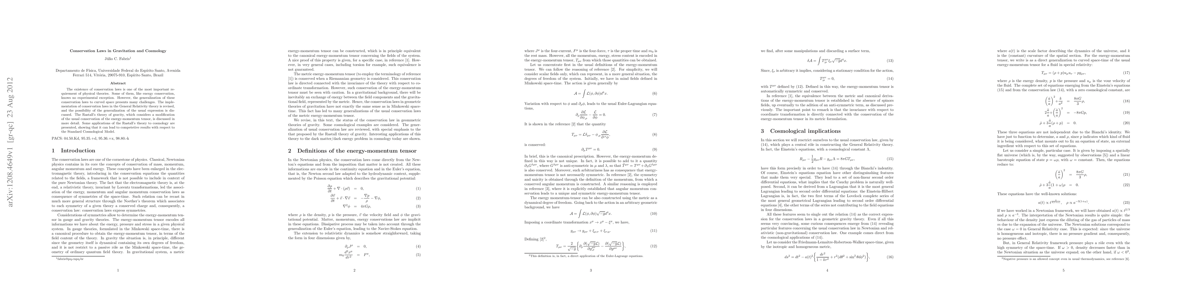This paper discusses conservation laws in gravitation and cosmology, proposing a new theory of gravity that modifies energy-momentum tensor conservation, offering competitive results with the Standard Cosmological Model.