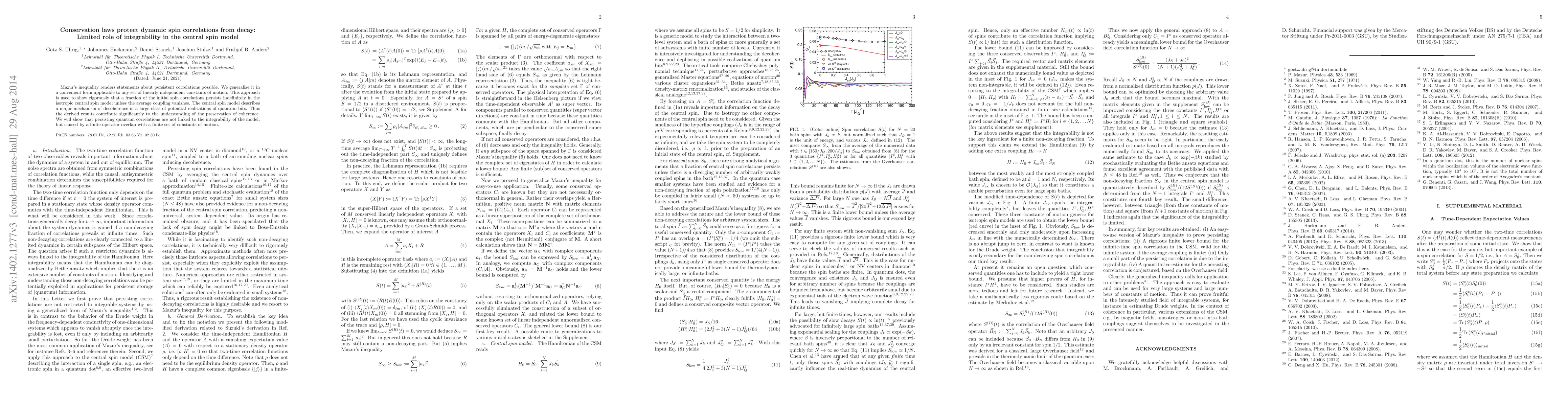 Mazur's inequality renders statements about persistent correlations possible. We generalize it in a convenient form applicable to any set of linearly independent constants of motion. This approach is used to show rigorously that a fraction of the initial spin correlations persists indefinitely in the isotropic central spin model unless the average coupling vanishes. The central spin model describes a major mechanism of decoherence in a large class of potential realizations of quantum bits. Thus the derived results contribute significantly to the understanding of the preservation of coherence. We will show that persisting quantum correlations are not linked to the integrability of the model, but caused by a finite operator overlap with a finite set of constants of motion.