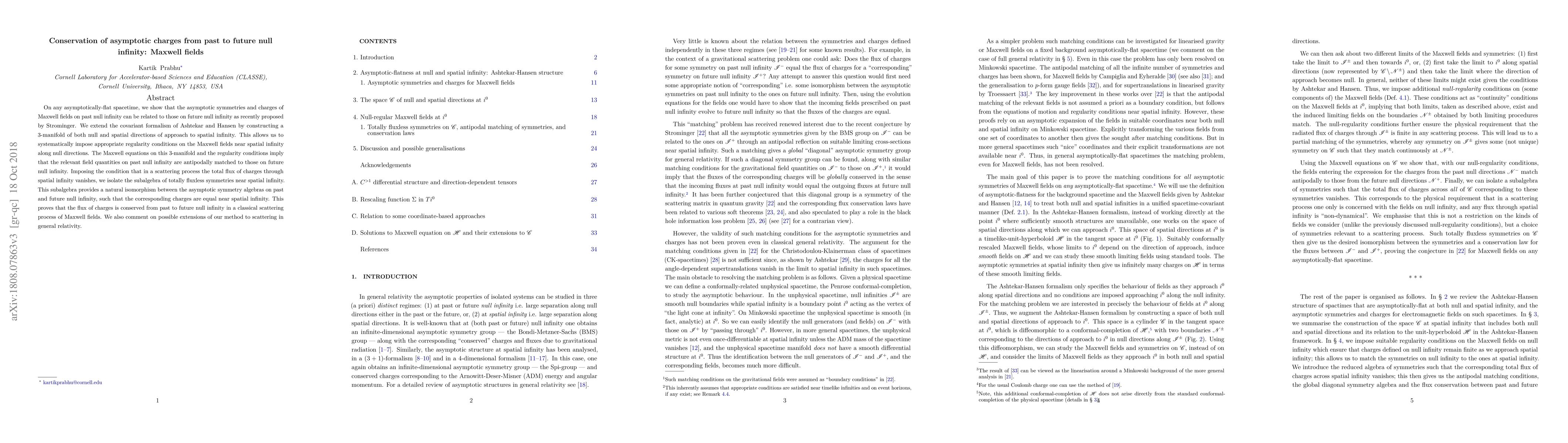 This paper demonstrates the conservation of asymptotic charges for Maxwell fields between past and future null infinity in asymptotically-flat spacetimes, establishing an isomorphism between the corresponding symmetry algebras and proving charge flux conservation in classical scattering processes. The method extends to potential applications in general relativity.