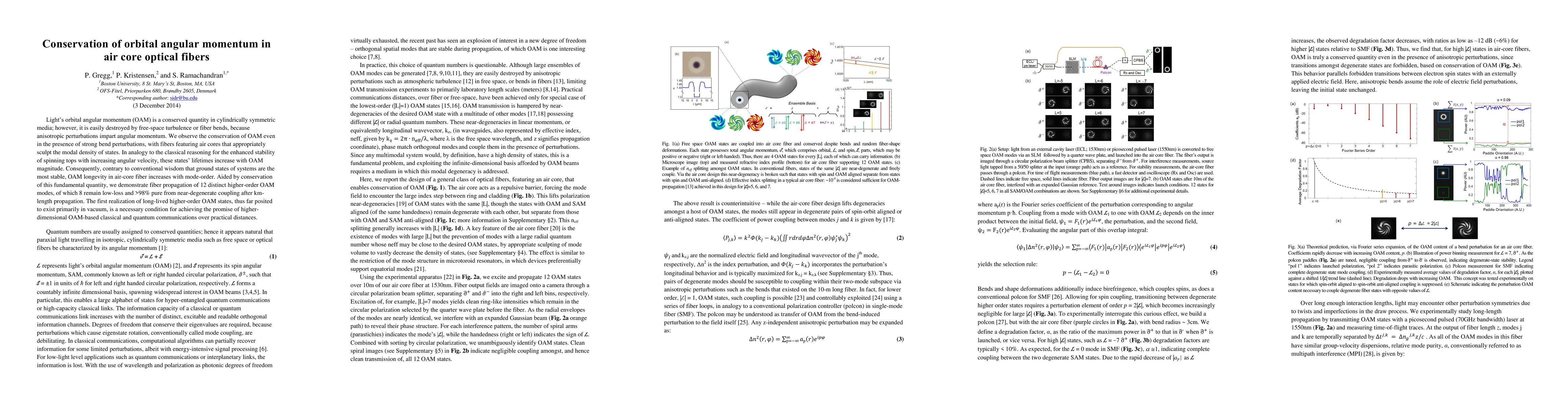 Light's orbital angular momentum (OAM) is a conserved quantity in cylindrically symmetric media; however, it is easily destroyed by free-space turbulence or fiber bends, because anisotropic perturbations impart angular momentum. We observe the conservation of OAM even in the presence of strong bend perturbations, with fibers featuring air cores that appropriately sculpt the modal density of states. In analogy to the classical reasoning for the enhanced stability of spinning tops with increasing angular velocity, these states' lifetimes with OAM magnitude. Consequently, contrary to convention wisdom that ground states of systems are the most stable, OAM longevity in air-core fiber increases with mode order. Aided by conservation of this fundamental quantity, we demonstrate fiber propagation of 12 distinct higher-order OAM modes, of which 8 remain low-loss and >98% pure from near-degenerate coupling after km-length propagation. The first realization of long-lived higher-order OAM states, thus far posited to exist primarily in vacuum, is a necessary condition for achieving the promise of higher-dimensional OAM-based classical and quantum communications over practical distances.