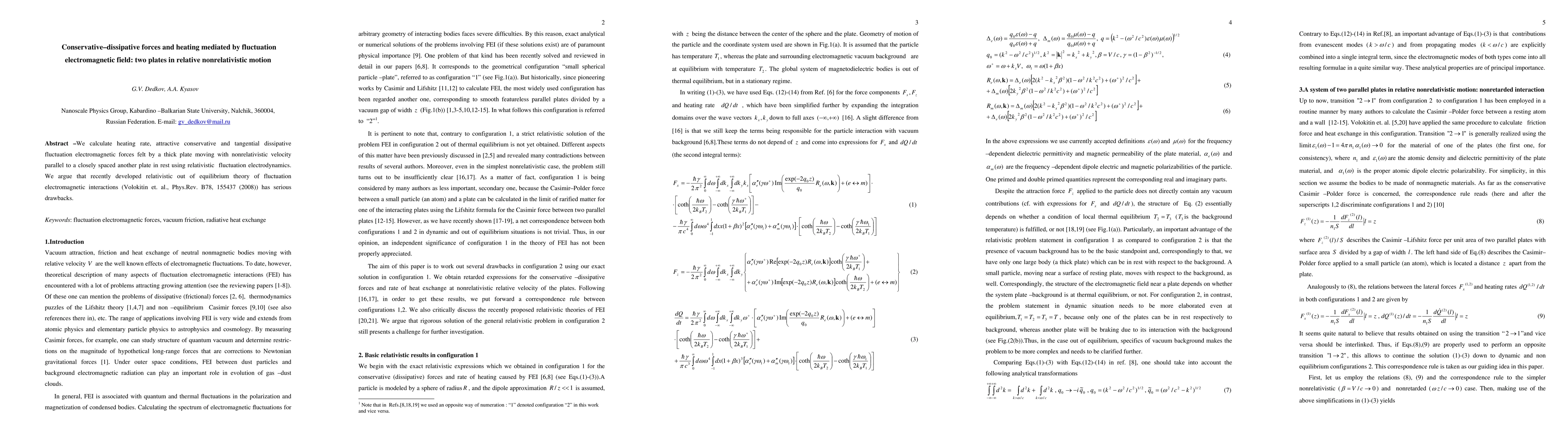 This paper calculates the heating rate and forces between two plates in relative nonrelativistic motion using relativistic fluctuation electrodynamics, highlighting significant flaws in the recently developed theory of fluctuation electromagnetic interactions.