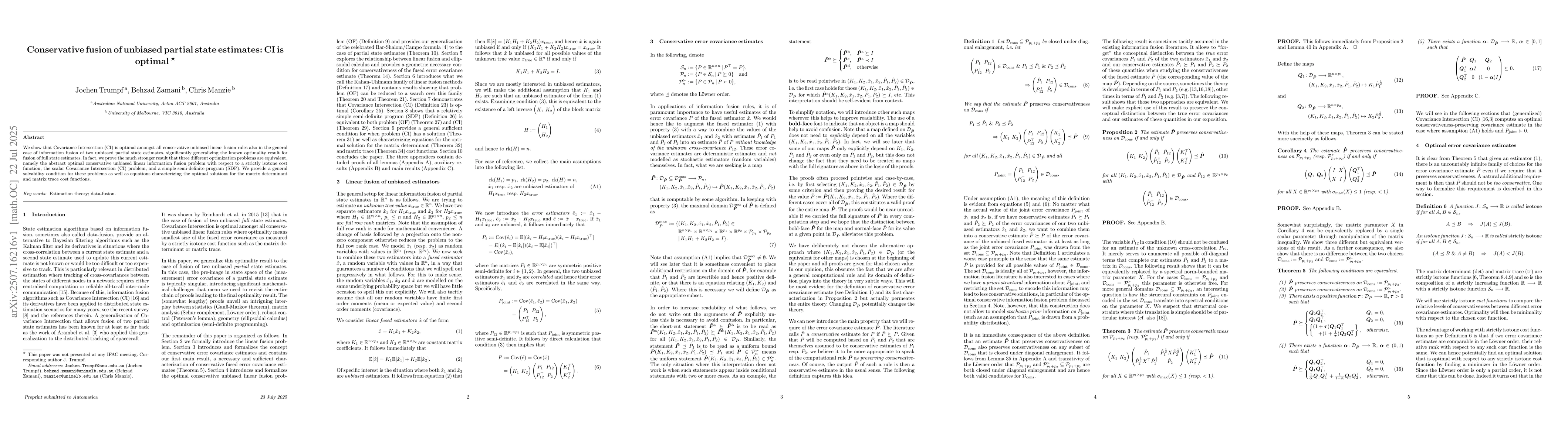 We show that Covariance Intersection (CI) is optimal amongst all conservative unbiased linear fusion rules also in the general case of information fusion of two unbiased partial state estimates, significantly generalizing the known optimality result for fusion of full state estimates. In fact, we prove the much stronger result that three different optimization problems are equivalent, namely the abstract optimal conservative unbiased linear information fusion problem with respect to a strictly isotone cost function, the scalar Covariance Intersection (CI) problem, and a simple semi-definite program (SDP). We provide a general solvability condition for these problems as well as equations characterizing the optimal solutions for the matrix determinant and matrix trace cost functions.