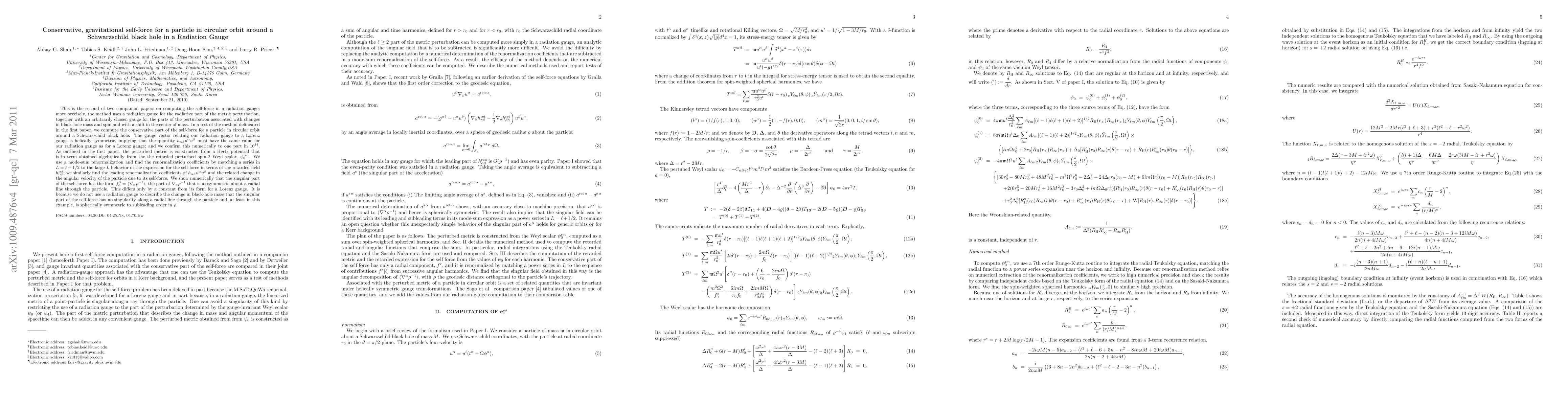 This paper computes the conservative gravitational self-force on a particle in circular orbit around a Schwarzschild black hole using a radiation gauge. It confirms numerically that the self-force in the radiation gauge matches that in a Lorenz gauge, and shows that the singular part of the self-force is spherically symmetric to subleading order in the particle's distance from the black hole.