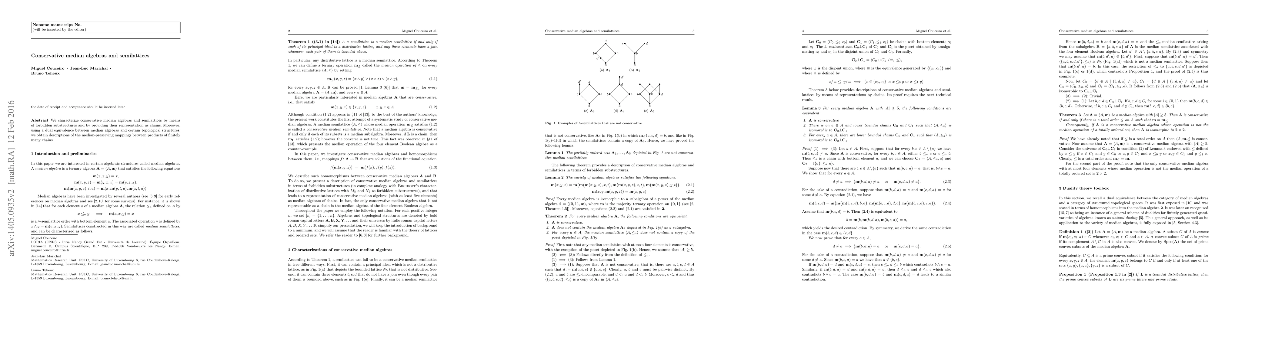 This paper characterizes conservative median algebras and semilattices through the lens of forbidden substructures and their representation as chains. It also explores the dual equivalence between median algebras and specific topological structures to describe median-preserving mappings between products of finitely many chains.