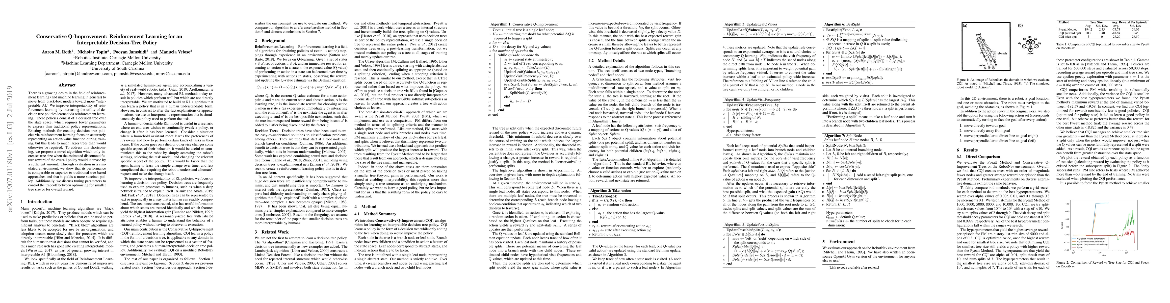 There is a growing desire in the field of reinforcement learning (and machine learning in general) to move from black-box models toward more "interpretable AI." We improve interpretability of reinforcement learning by increasing the utility of decision tree policies learned via reinforcement learning. These policies consist of a decision tree over the state space, which requires fewer parameters to express than traditional policy representations. Existing methods for creating decision tree policies via reinforcement learning focus on accurately representing an action-value function during training, but this leads to much larger trees than would otherwise be required. To address this shortcoming, we propose a novel algorithm which only increases tree size when the estimated discounted future reward of the overall policy would increase by a sufficient amount. Through evaluation in a simulated environment, we show that its performance is comparable or superior to traditional tree-based approaches and that it yields a more succinct policy. Additionally, we discuss tuning parameters to control the tradeoff between optimizing for smaller tree size or for overall reward.