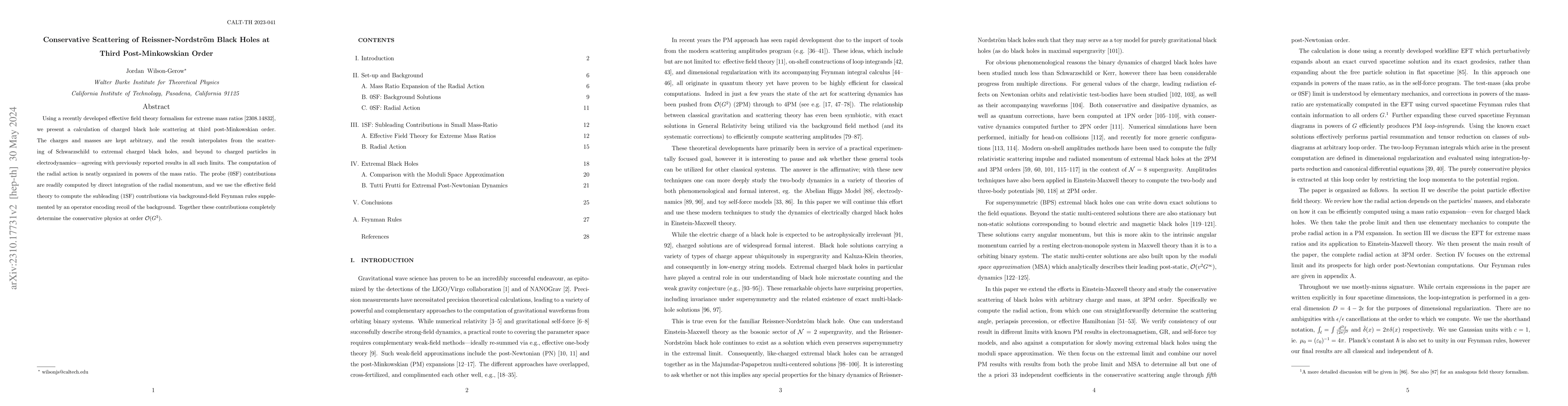 Using a recently developed effective field theory formalism for extreme mass ratios [2308.14832], we present a calculation of charged black hole scattering at third post-Minkowskian order. The charges and masses are kept arbitrary, and the result interpolates from the scattering of Schwarzschild to extremal charged black holes, and beyond to charged particles in electrodynamics -- agreeing with previously reported results in all such limits. The computation of the radial action is neatly organized in powers of the mass ratio. The probe (0SF) contributions are readily computed by direct integration of the radial momentum, and we use the effective field theory to compute the subleading (1SF) contributions via background-field Feynman rules supplemented by an operator encoding recoil of the background. Together these contributions completely determine the conservative physics at order~$\mathcal{O}(G^{3})$.