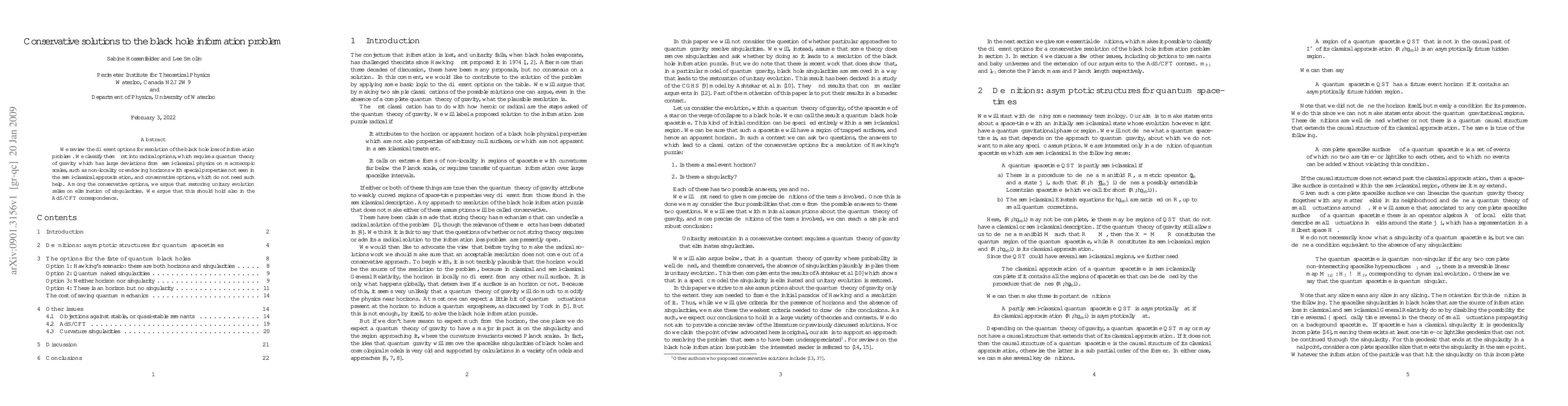 We review the different options for resolution of the black hole loss of information problem. We classify them first into radical options, which require a quantum theory of gravity which has large deviations from semi-classical physics on macroscopic scales, such as non-locality or endowing horizons with special properties not seen in the semi-classical approximation, and conservative options, which do not need such help. Among the conservative options, we argue that restoring unitary evolution relies on elimination of singularities. We argue that this should hold also in the AdS/CFT correspondence.