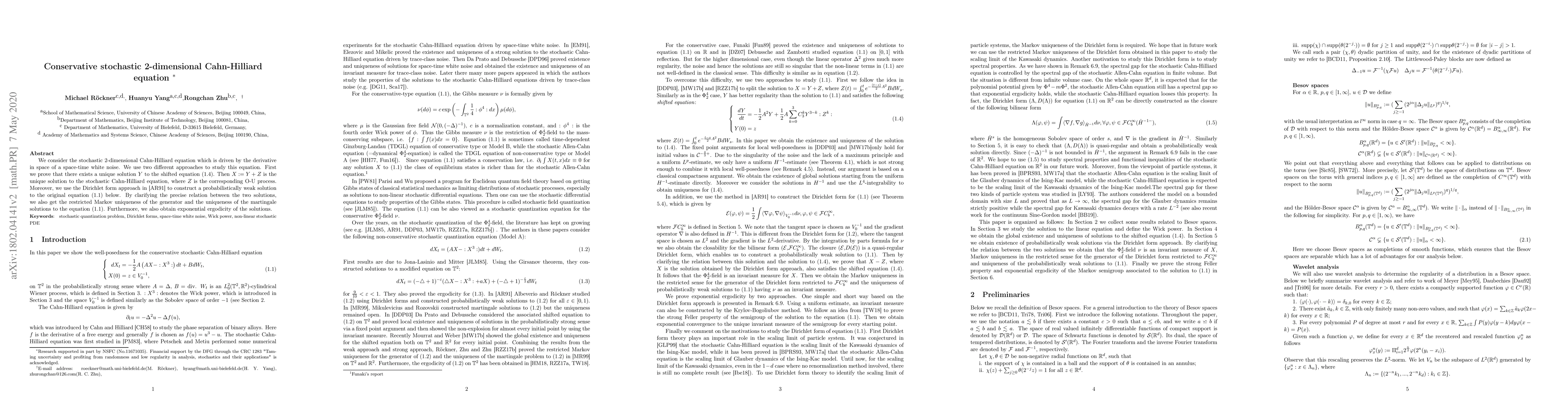 We consider the stochastic 2-dimensional Cahn-Hilliard equation which is driven by the derivative in space of a space-time white noise. We use two different approaches to study this equation. First we prove that there exists a unique solution $Y$ to the shifted equation (see (1.4) below), then $X:=Y+{Z}$ is the unique solution to stochastic Cahn-Hilliard equaiton, where ${Z}$ is the corresponding O-U process. Moreover, we use Dirichlet form approach in \cite{Albeverio:1991hk} to construct the probabilistically weak solution the the original equation (1.1) below. By clarifying the precise relation between the solutions obtained by the Dirichlet forms aprroach and $X$, we can also get the restricted Markov uniquness of the generator and the uniqueness of martingale solutions to the equation (1.1).