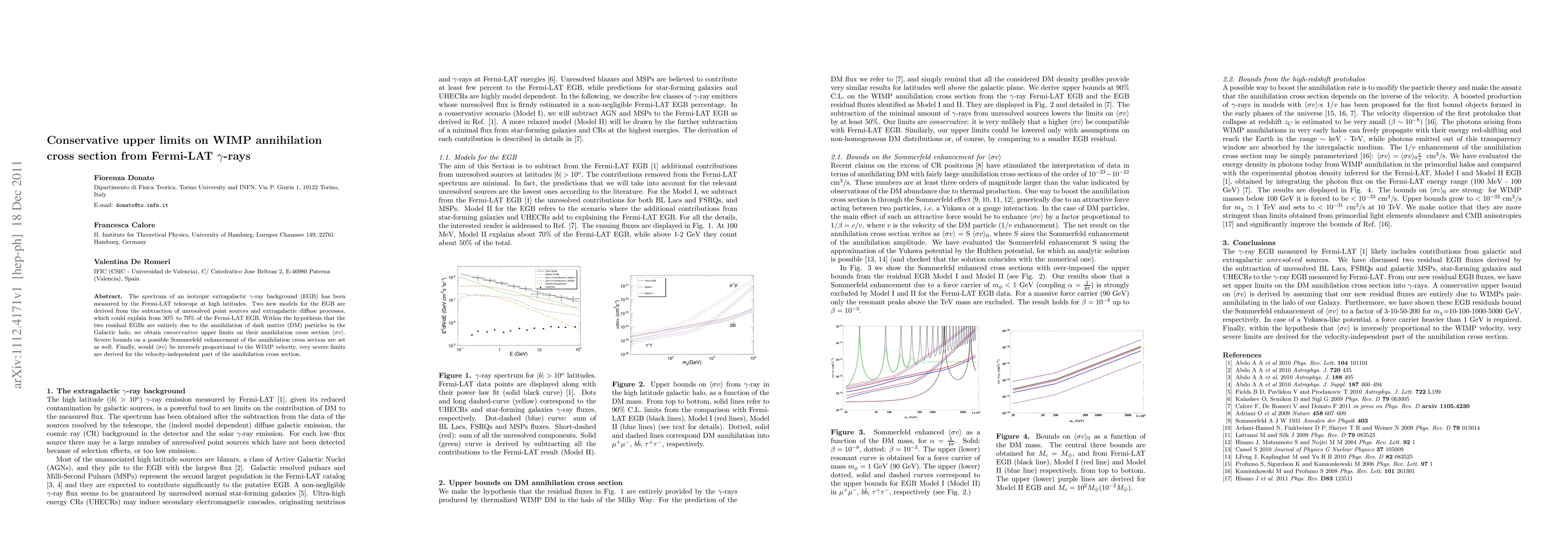 The Fermi-LAT telescope detected a significant gamma-ray background, which may be explained by dark matter annihilation in the Galactic halo. Conservative upper limits on the WIMP annihilation cross section have been set, with severe bounds on possible enhancements.