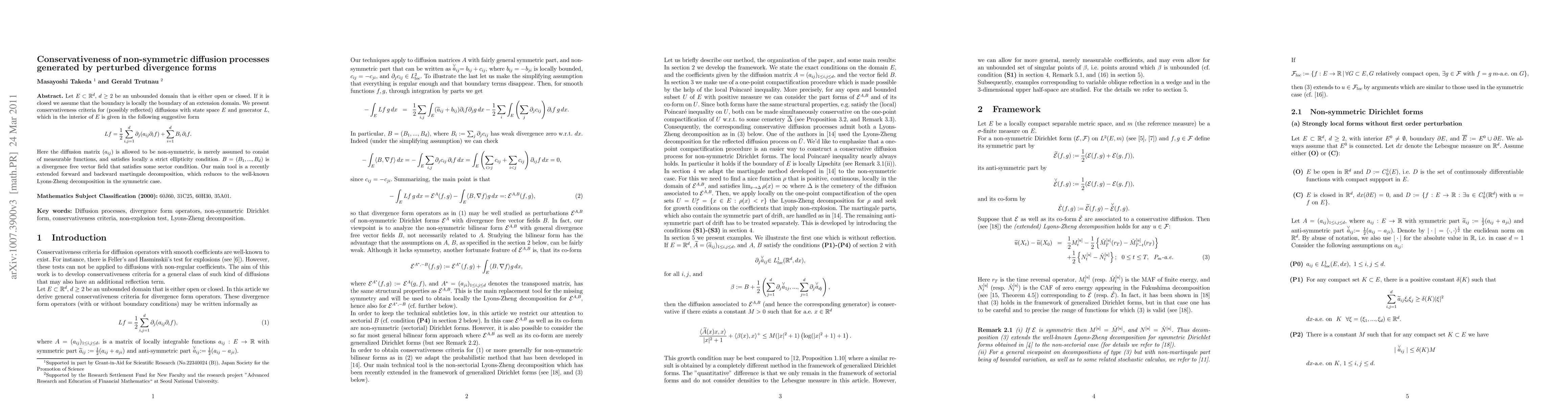 This paper introduces conservativeness criteria for non-symmetric diffusions generated by perturbed divergence forms, which helps in understanding the behavior of these processes.