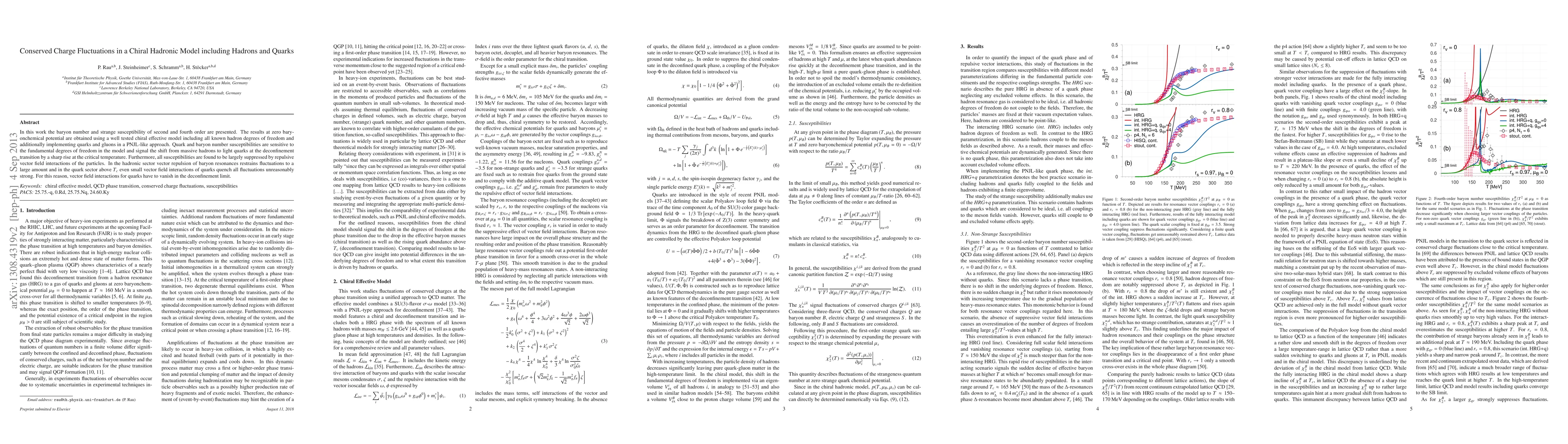 In this work the susceptibility coefficients of the strange and non-strange quark number of second and fourth order are presented. The results at zero baryonchemical potential are obtained using a well tested chiral effective model including all known hadron degrees of freedom and additionally incorporating quarks and gluons in a PNJL model approach. Quark number susceptibilities are sensitive to the fundamental degrees of freedom in the model and signal the shift from massive hadrons to light quarks at the deconfinement transition by a sharp rise at the critical temperature. Furthermore, all susceptibilities are found to be largely suppressed by repulsive vector field interactions of the particles. In the hadronic sector vector repulsion of baryon resonances restrains fluctuations to a region determined in lattice QCD. However, in the quark sector above $T_c$ even small vector field interactions of quarks quench all fluctuations almost completely. For this reason, vector field interactions for quarks have to vanish in the deconfinement limit.