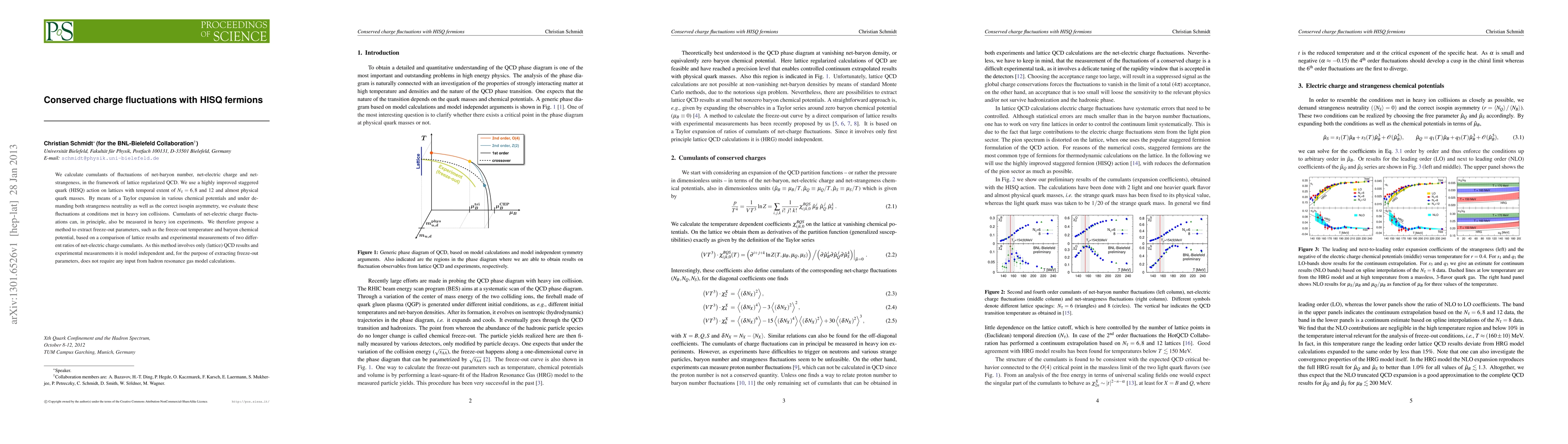 This paper calculates cumulants of net-baryon, electric charge, and strangeness fluctuations using HISQ fermions in lattice QCD, proposing a model-independent method to extract freeze-out parameters from heavy ion collision experiments based on net-electric charge cumulant ratios.