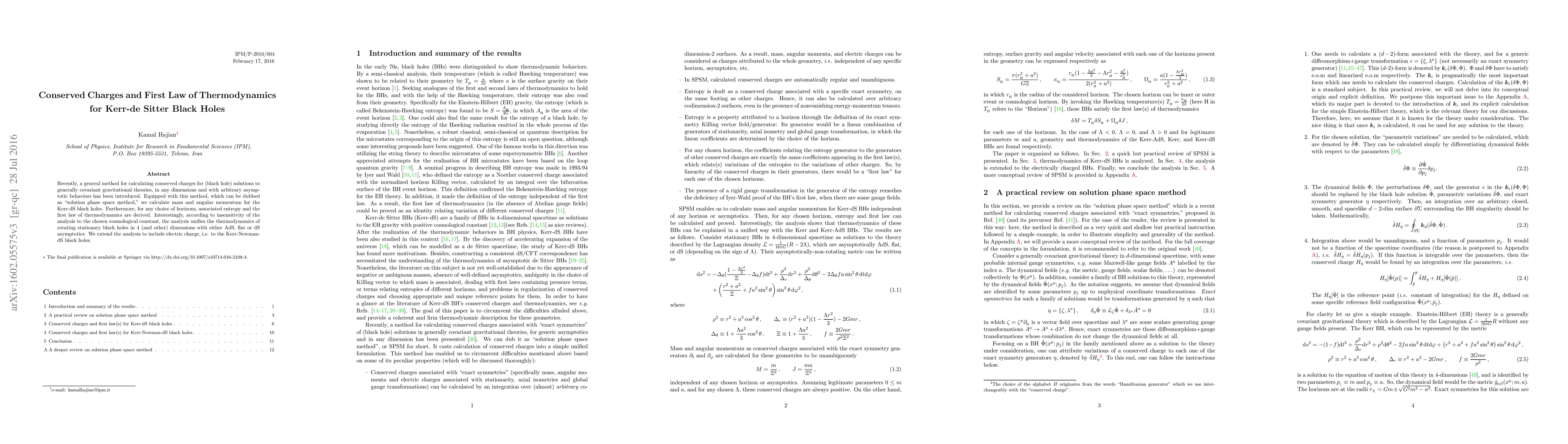 This paper calculates conserved charges and derives the first law of thermodynamics for Kerr-de Sitter black holes using the "solution phase space method." It unifies the thermodynamics of rotating black holes across different asymptotic behaviors, extending the analysis to include electric charge in Kerr-Newman-dS black holes.