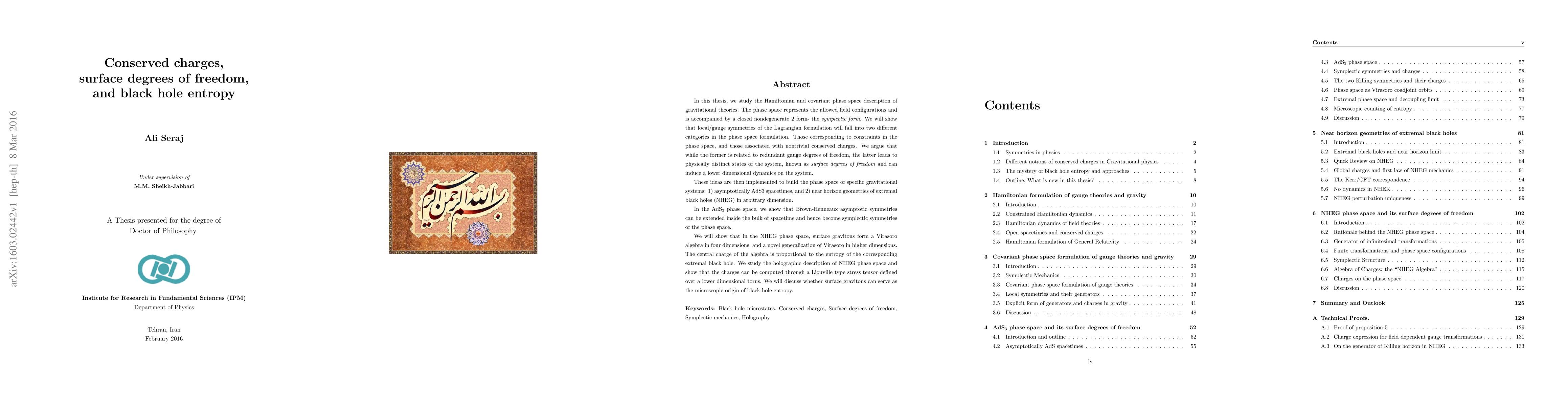 This research paper explores the connection between conserved charges, surface degrees of freedom, and black hole entropy in gravitational theories, revealing a link to lower-dimensional dynamics and holographic descriptions.