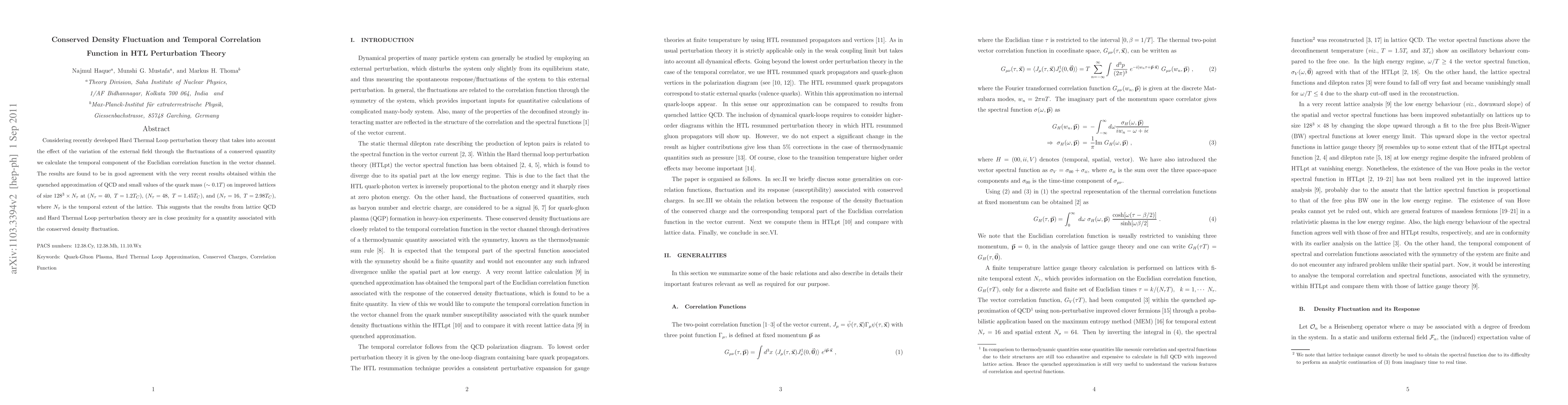Researchers found agreement between Hard Thermal Loop perturbation theory and lattice QCD for a conserved density fluctuation quantity, with similarities in results across different lattice sizes and temperatures.