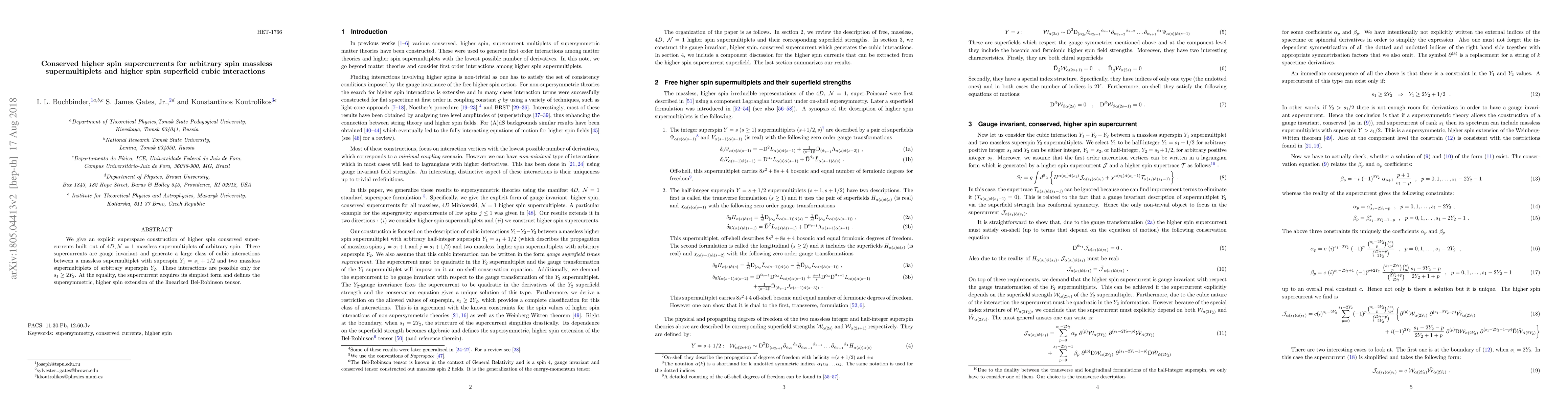 We give an explicit superspace construction of higher spin conserved supercurrents built out of $4D,\mathcal{N}=1$ massless supermultiplets of arbitrary spin. These supercurrents are gauge invariant and generate a large class of cubic interactions between a massless supermultiplet with superspin $Y_1=s_1+1/2$ and two massless supermultiplets of arbitrary superspin $Y_2$. These interactions are possible only for $s_1\geq 2Y_2$. At the equality, the supercurrent acquires its simplest form and defines the supersymmetric, higher spin extension of the linearized Bel-Robinson tensor.
