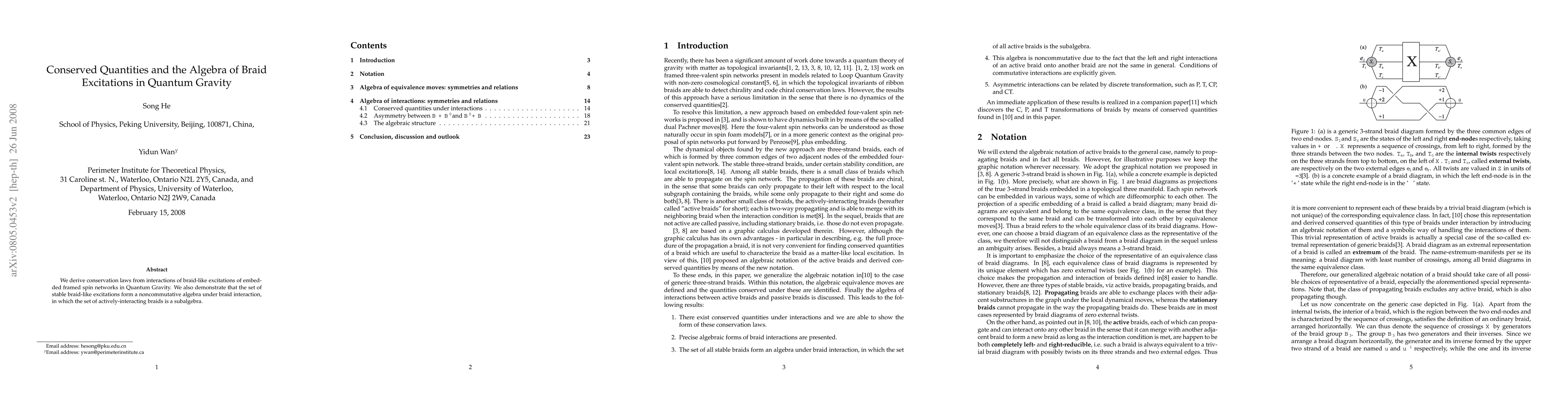 Researchers derived conservation laws from braid-like excitations in Quantum Gravity, showing they form a noncommutative algebra under interaction. This work advances our understanding of the algebraic structure behind quantum gravity's excitations.