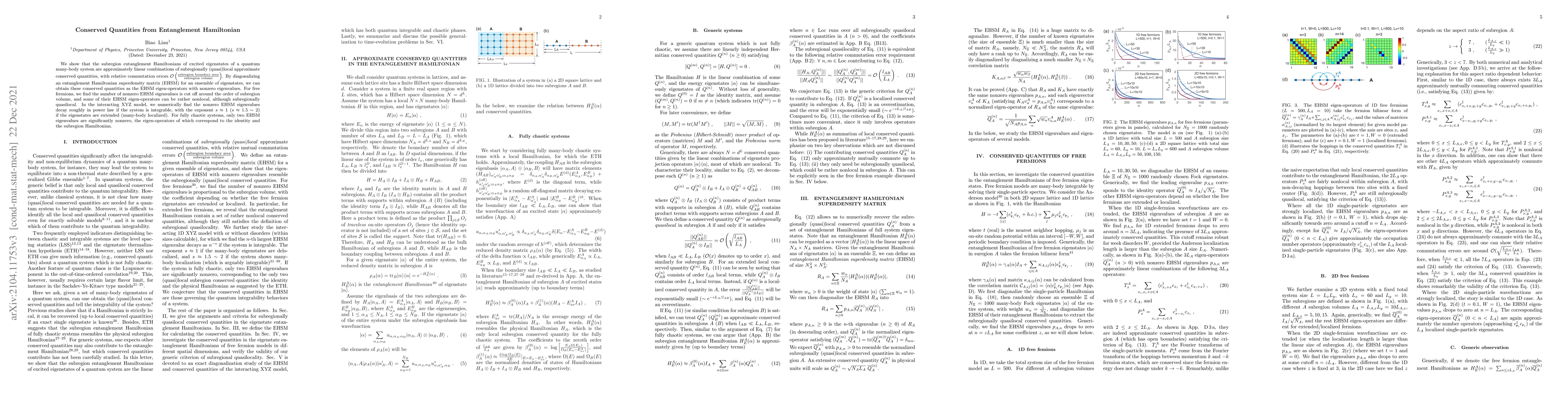 This paper demonstrates that subregion entanglement Hamiltonians in quantum many-body systems can be approximated by linear combinations of subregionally quasilocal conserved quantities, with errors proportional to the boundary area over volume. It identifies these conserved quantities through diagonalizing the entanglement Hamiltonian superdensity matrix, revealing distinct behaviors in free fermions, integrable systems, and chaotic systems.