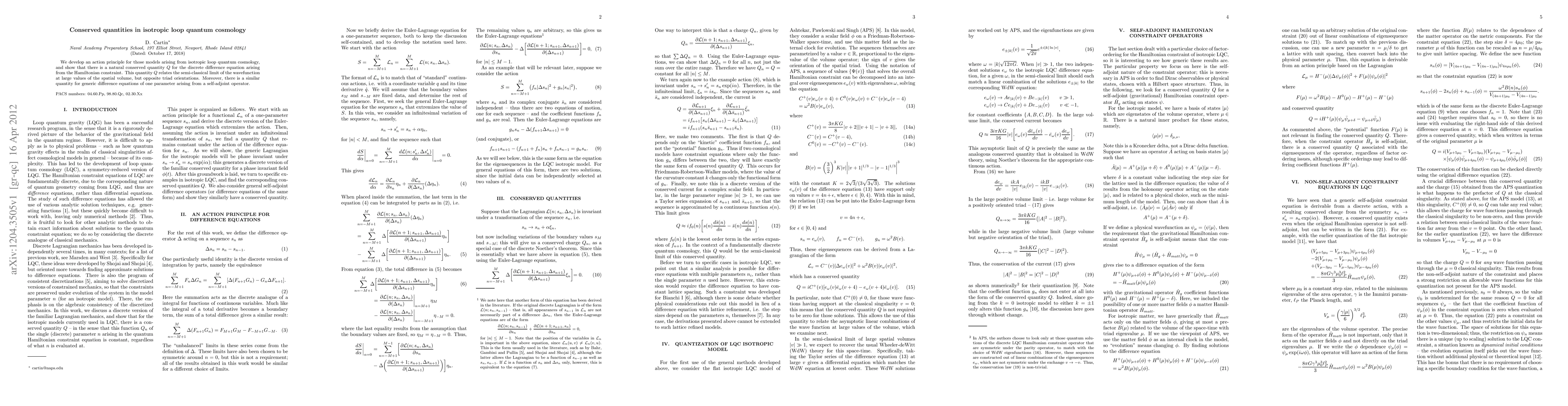 This paper develops an action principle for isotropic loop quantum cosmology and identifies a conserved quantity $Q$ that relates the semi-classical limit of wavefunctions across different spatial volumes and triad orientations. It also extends this concept to generic difference equations derived from self-adjoint operators.