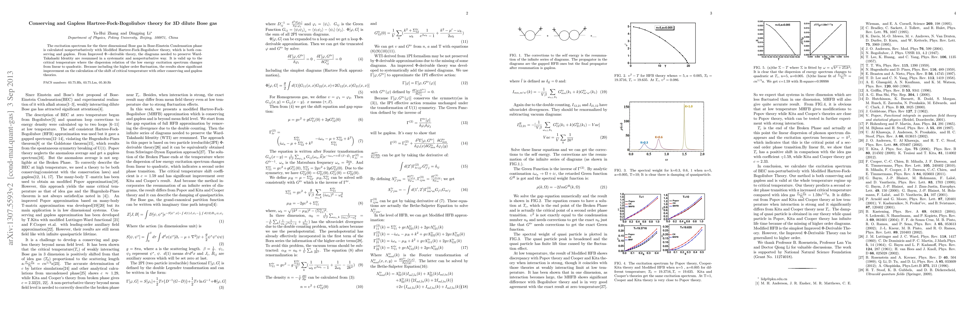 This paper presents a conserving and gapless Modified Hartree-Fock-Bogoliubov theory for calculating the energy spectrum of a 3D dilute Bose gas at finite temperature, showing significant discrepancies with Popov theory and a positive shift in critical temperature due to repulsive interactions.