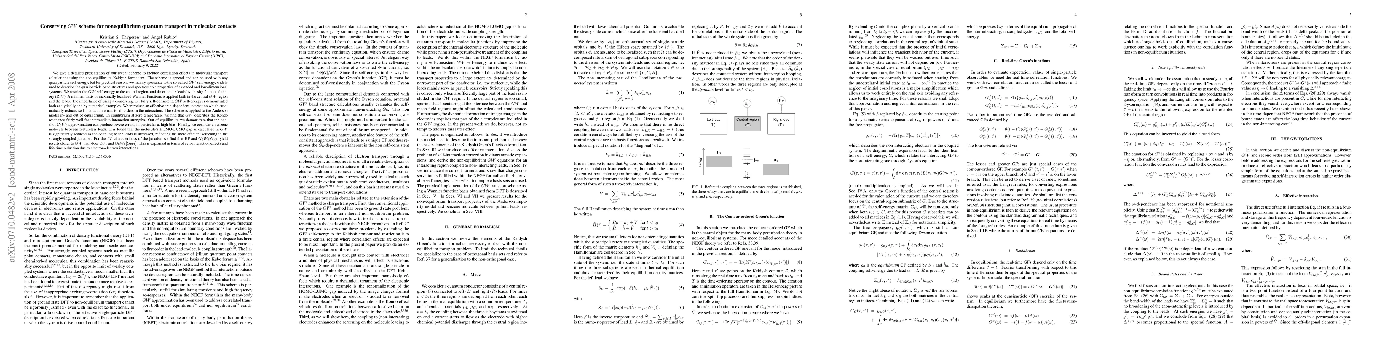 This paper presents a conserving GW scheme for nonequilibrium quantum transport in molecular contacts, using the GW approximation within the non-equilibrium Keldysh formalism. The authors demonstrate the importance of a fully self-consistent GW self-energy and apply it to the Anderson model and a benzene molecule, showing that GW calculations better describe the Kondo resonance and transport properties compared to DFT and G0W0 approximations.