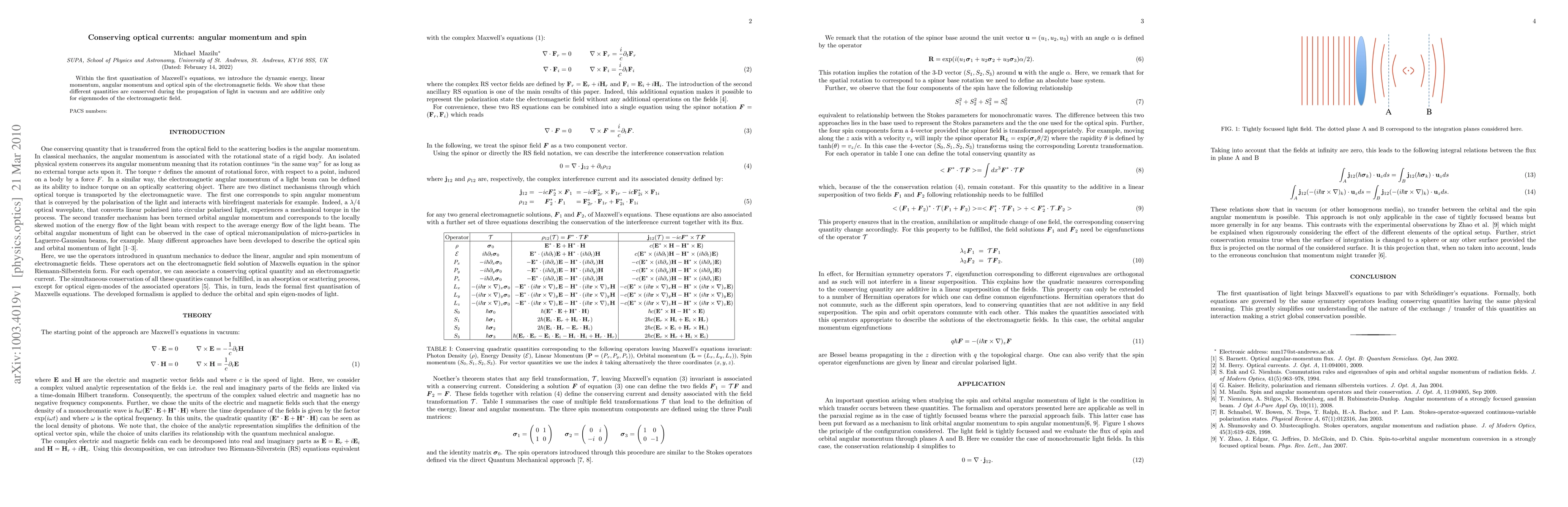 Researchers introduce new conserved quantities in light propagation, including angular momentum and spin, which add up only for specific modes of electromagnetic fields.