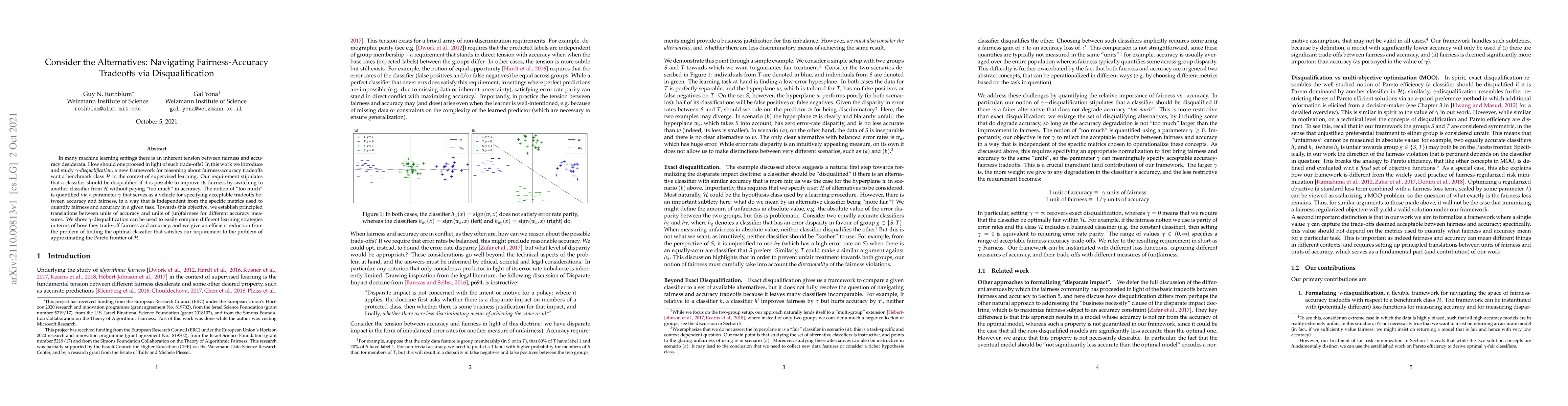 This paper introduces $\gamma$-disqualification, a framework to navigate fairness-accuracy tradeoffs in supervised learning by disqualifying classifiers that can be improved in fairness without significantly sacrificing accuracy. The parameter $\gamma$ quantifies acceptable tradeoffs, enabling comparisons between different learning strategies.
