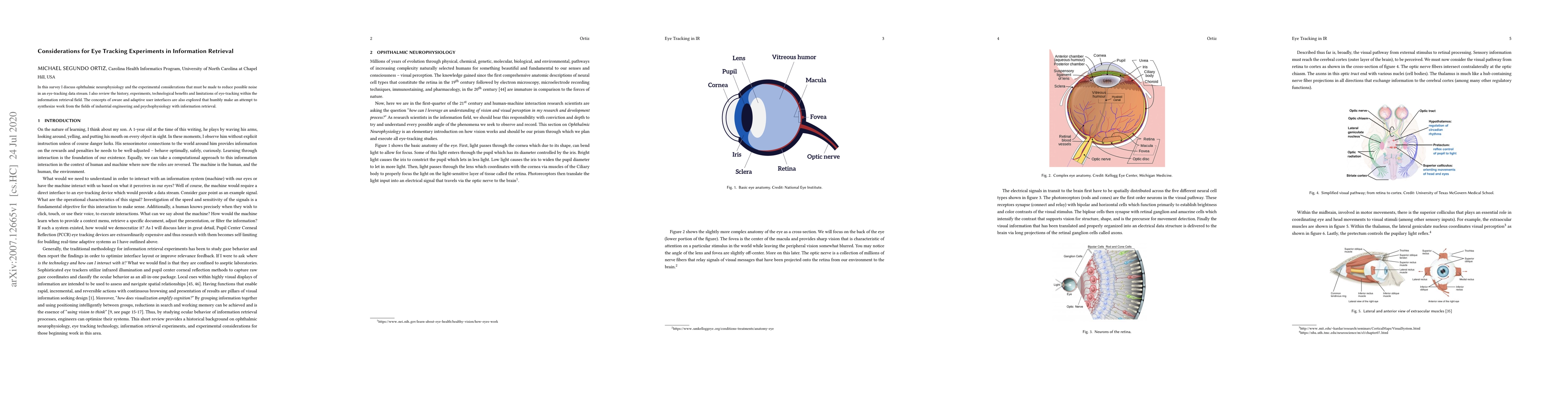 This paper surveys ophthalmic neurophysiology and experimental considerations to minimize noise in eye-tracking data for information retrieval. It reviews the history, benefits, and limitations of eye-tracking technology and explores adaptive user interfaces that integrate industrial engineering and psychophysiology with information retrieval.