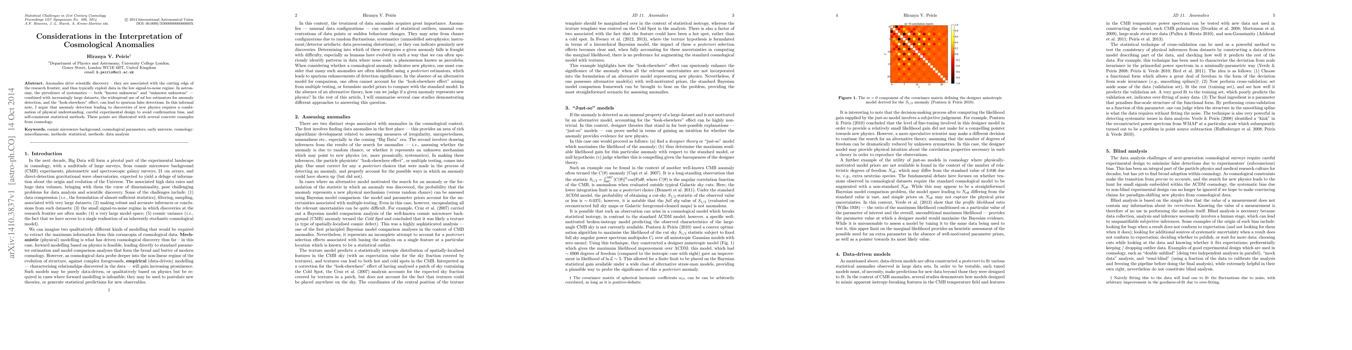 Anomalies drive scientific discovery -- they are associated with the cutting edge of the research frontier, and thus typically exploit data in the low signal-to-noise regime. In astronomy, the prevalence of systematics --- both "known unknowns" and "unknown unknowns" --- combined with increasingly large datasets, the widespread use of ad hoc estimators for anomaly detection, and the "look-elsewhere" effect, can lead to spurious false detections. In this informal note, I argue that anomaly detection leading to discoveries of new physics requires a combination of physical understanding, careful experimental design to avoid confirmation bias, and self-consistent statistical methods. These points are illustrated with several concrete examples from cosmology.