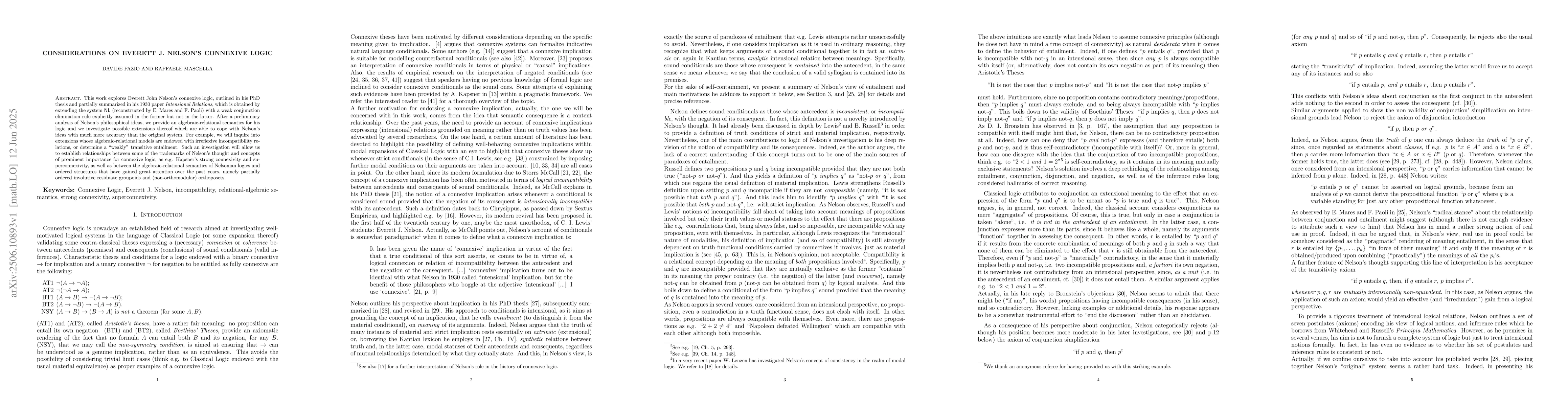 This work explores Everett John Nelson's connexive logic, outlined in his PhD thesis and partially summarized in his 1930 paper \emph{Intensional Relations}, which is obtained by extending the system $\mathsf{NL}$ (reconstructed by E. Mares and F. Paoli) with a weak conjunction elimination rule explicitly assumed in the former but not in the latter. After a preliminary analysis of Nelson's philosophical ideas, we provide an algebraic-relational semantics for his logic and we investigate possible extensions thereof which are able to cope with Nelson's ideas with much more accuracy than the original system. For example, we will inquire into extensions whose algebraic-relational models are endowed with irreflexive incompatibility relations, or determine a ``weakly'' transitive entailment. Such an investigation will allow us to establish relationships between some of the trademarks of Nelson's thought and concepts of prominent importance for connexive logic, as e.g. Kapsner's strong connexivity and superconnexivity, as well as between the algebraic-relational semantics of Nelsonian logics and ordered structures that have gained great attention over the past years, namely partially ordered involutive residuate groupoids and (non-orthomodular) orthoposets.