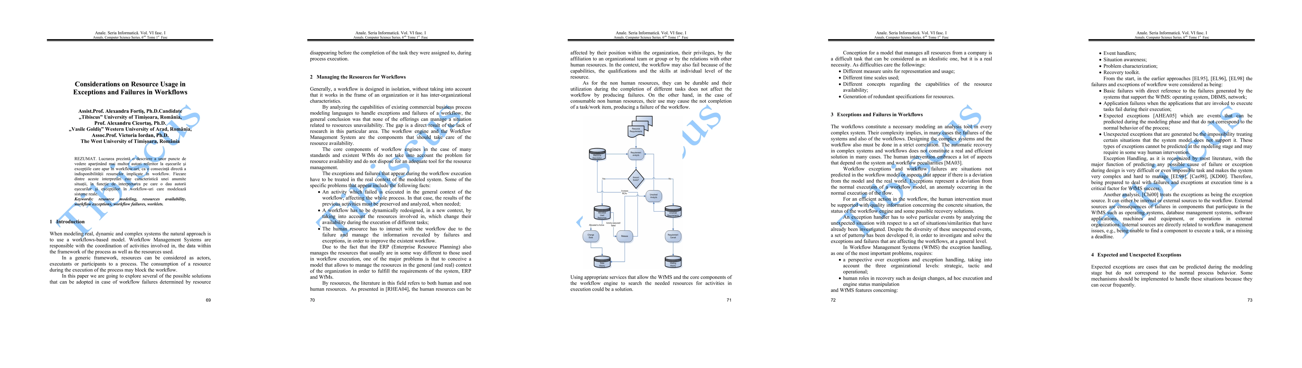 The paper presents a description of some point of view of different authors related to the failures and exceptions that appear in workflows, as a direct consequence of unavailability of resources involved in the workflow. Each of these interpretations is typical for a certain situation, depending on the authors' interpretation of failures and exceptions in workflows modeling real dynamical systems.