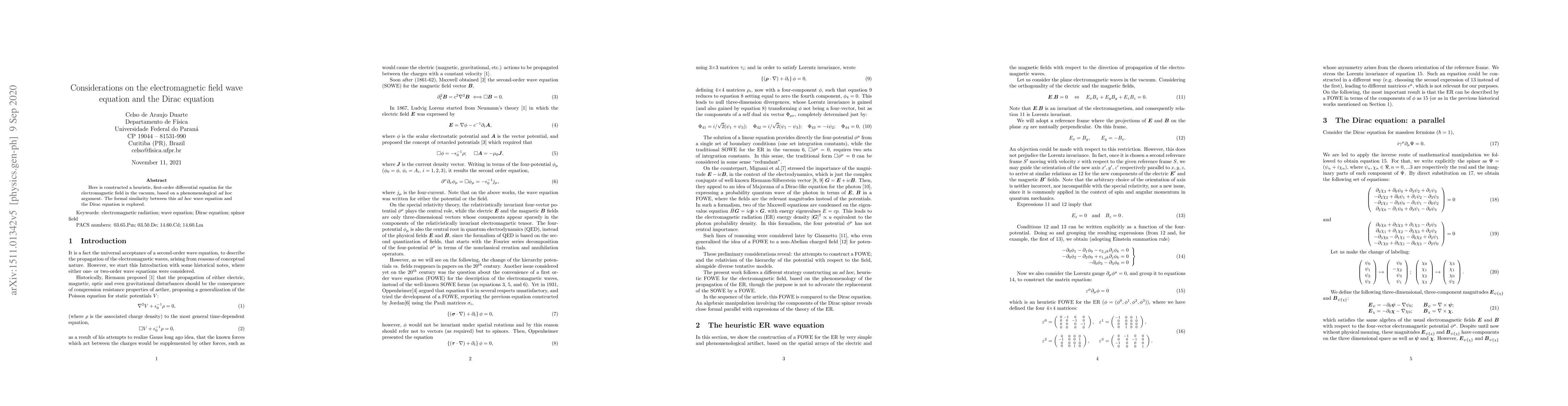 Summary: This paper constructs a heuristic first-order differential equation for the electromagnetic field in vacuum, and explores its formal similarity to the Dirac equation, suggesting potential connections between electromagnetic and quantum mechanical frameworks.