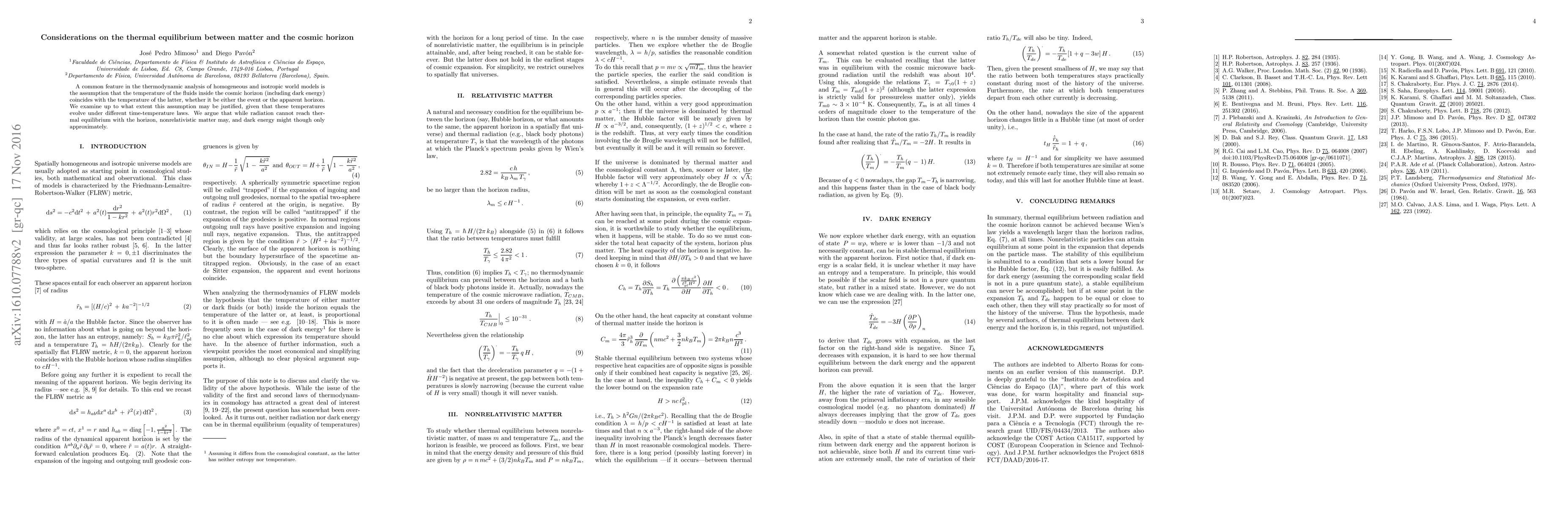 This paper investigates the assumption of thermal equilibrium between matter and the cosmic horizon, finding that while radiation does not reach thermal equilibrium, non-relativistic matter can, and dark energy might only approximately. The study highlights the differing time-temperature laws governing these components.