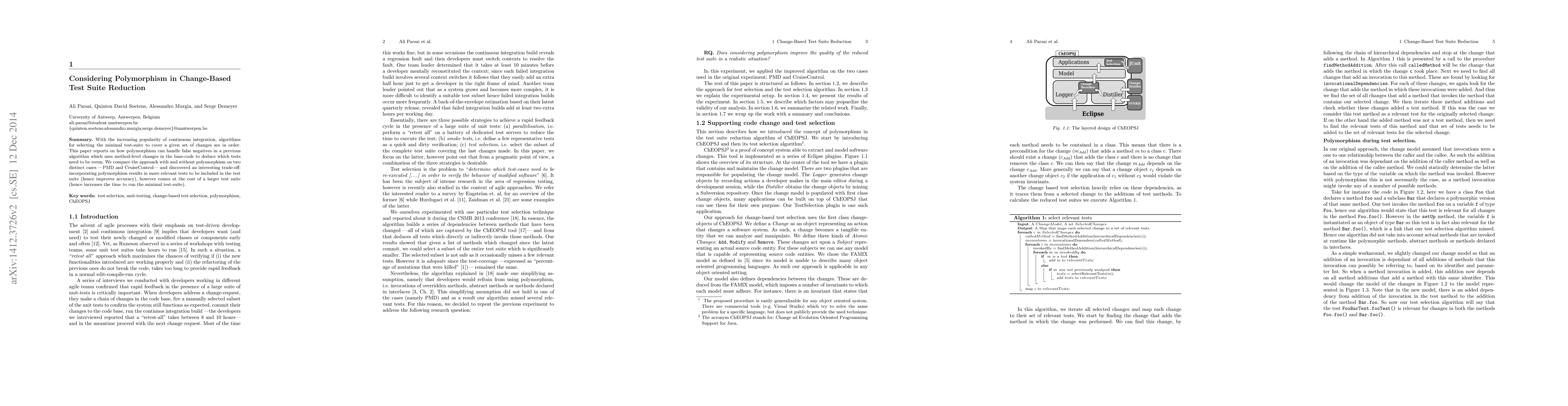 With the increasing popularity of continuous integration, algorithms for selecting the minimal test-suite to cover a given set of changes are in order. This paper reports on how polymorphism can handle false negatives in a previous algorithm which uses method-level changes in the base-code to deduce which tests need to be rerun. We compare the approach with and without polymorphism on two distinct cases ---PMD and CruiseControl--- and discovered an interesting trade-off: incorporating polymorphism results in more relevant tests to be included in the test suite (hence improves accuracy), however comes at the cost of a larger test suite (hence increases the time to run the minimal test-suite).
