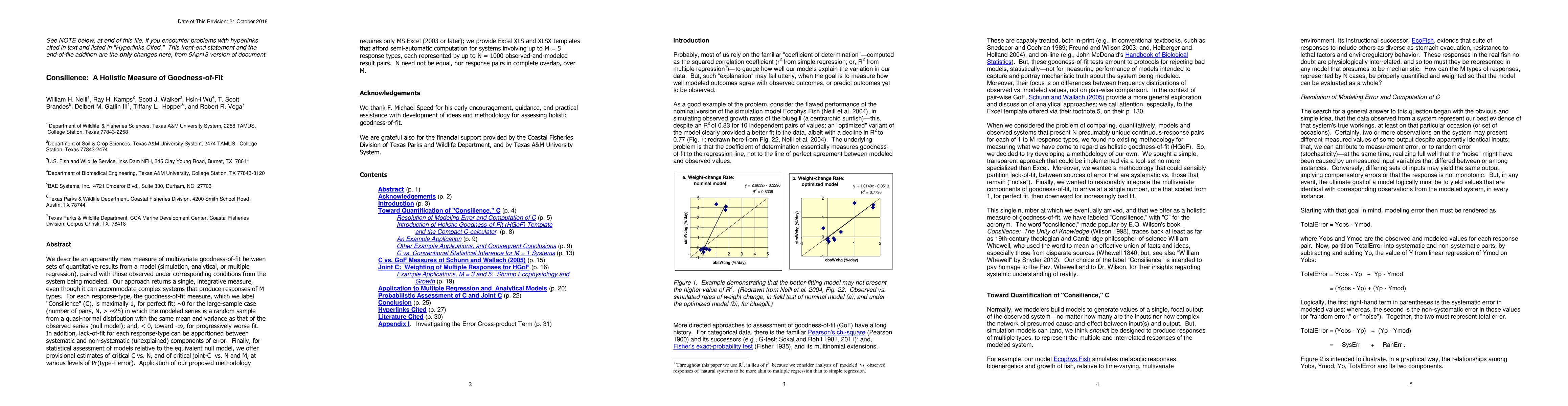 A new measure of goodness-of-fit called Consilience is introduced to assess how well a model matches observed data, with applications in statistical assessment and model evaluation.