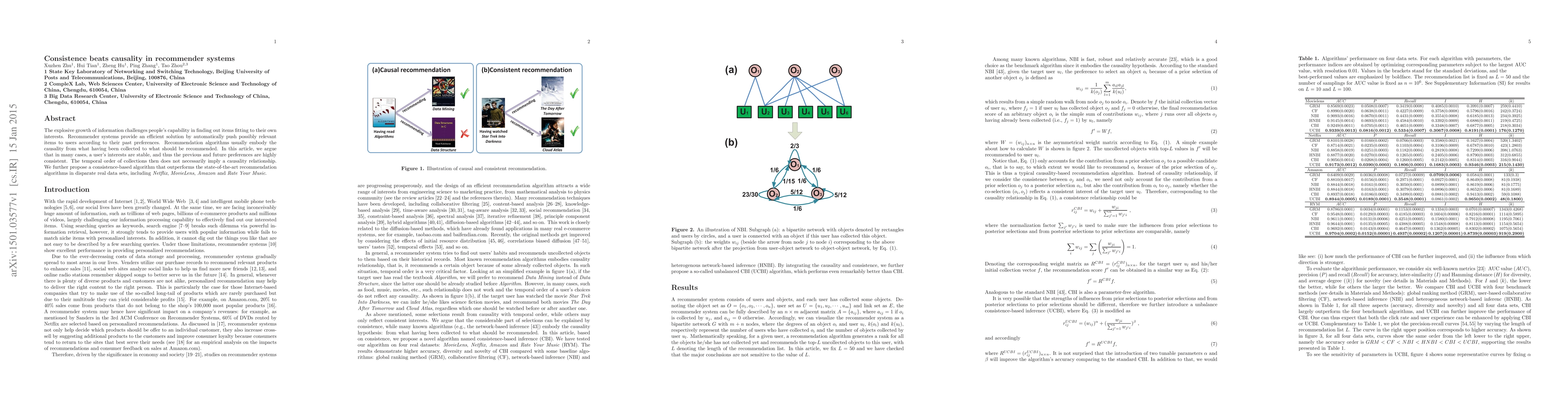 This paper argues that consistency in user preferences often outweighs causality in recommender systems, proposing an algorithm that outperforms state-of-the-art methods in real-world datasets.