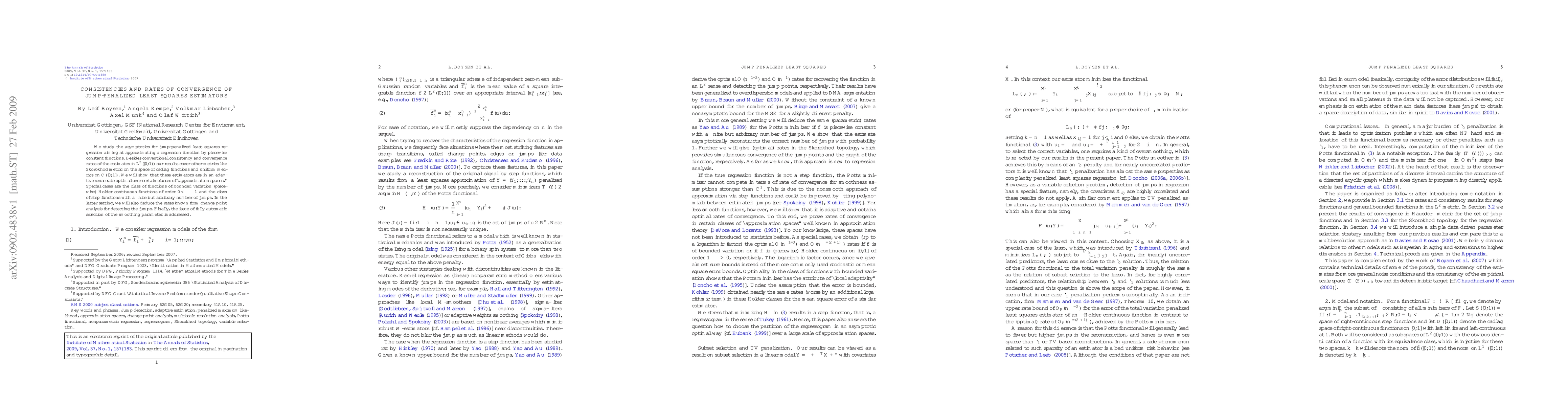 This paper investigates the asymptotic properties of jump-penalized least squares estimators for approximating piecewise constant regression functions, demonstrating consistency and convergence rates in various metrics. It shows adaptive rate optimality for classes of bounded variation and Hölder continuous functions, and addresses automatic selection of the smoothing parameter.
