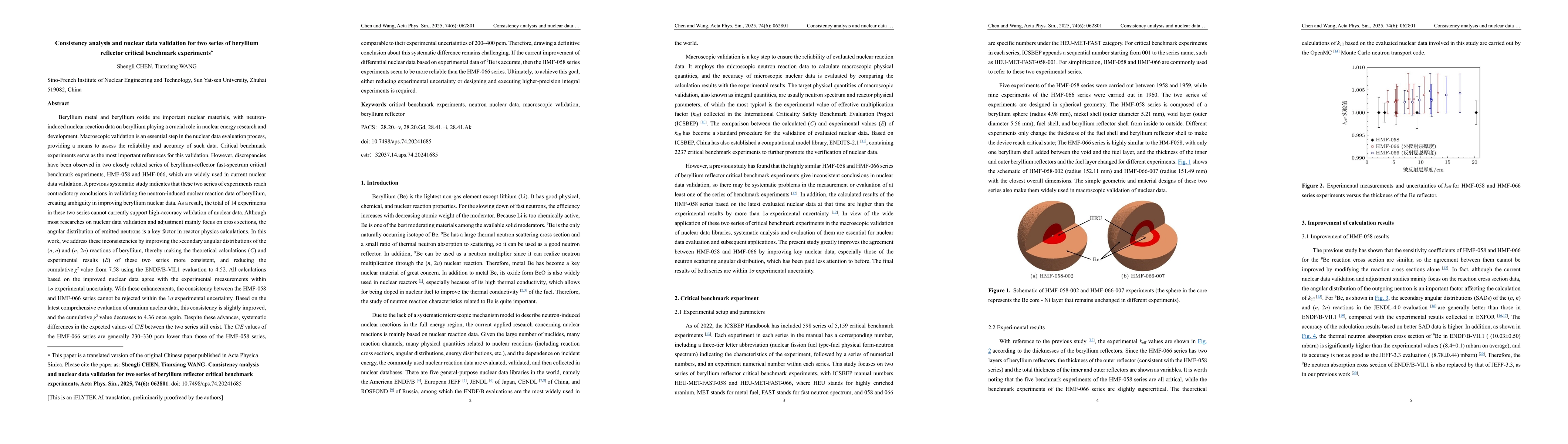 Neutron-induced nuclear reaction data on beryllium playing a crucial role in nuclear application. However, discrepancies have been observed in two closely related series of beryllium-reflector fast-spectrum critical benchmark experiments, HMF-058 and HMF-066, which are widely used in current nuclear data validation. In this work, we address these inconsistencies by improving the secondary angular distributions of the (n,n) and (n,2n) reactions of beryllium, thereby making the theoretical calculations (C) and experimental results (E) of these two series more consistent, and reducing the cumulative ${\chi^2}$ value from 7.58 using the ENDF/B-VII.1 to 4.52. All calculations based on the improved nuclear data agree with the experimental measurements within 1${\sigma}$ experimental uncertainty. Based on the latest comprehensive evaluation of uranium nuclear data, this consistency is slightly improved, and the cumulative ${\chi^2}$ value decreases to 4.36 once again. Despite these advances, systematic differences in the expected values of C/E between the two series still exist. The C/E values of the HMF-066 series are generally 230-330 pcm lower than those of the HMF-058 series, comparable to their experimental uncertainties of 200-400 pcm. Therefore, drawing a definitive conclusion about this systematic difference remains challenging. If the current improvement of differential nuclear data based on experimental data of ${^9}$Be is accurate, then the HMF-058 series experiments seem to be more reliable than the HMF-066 series.